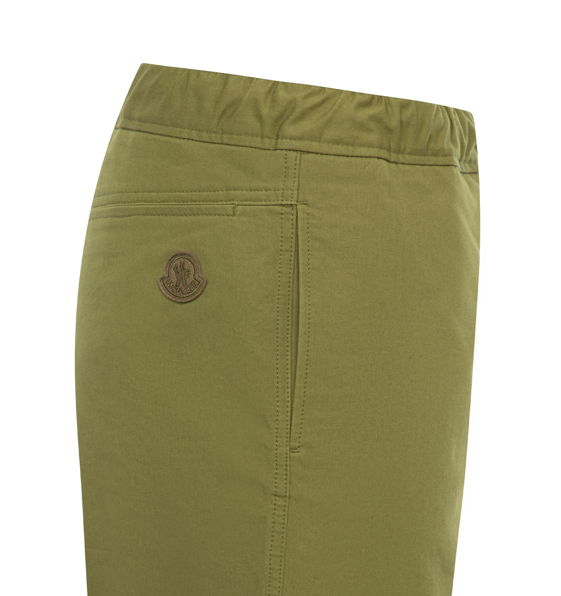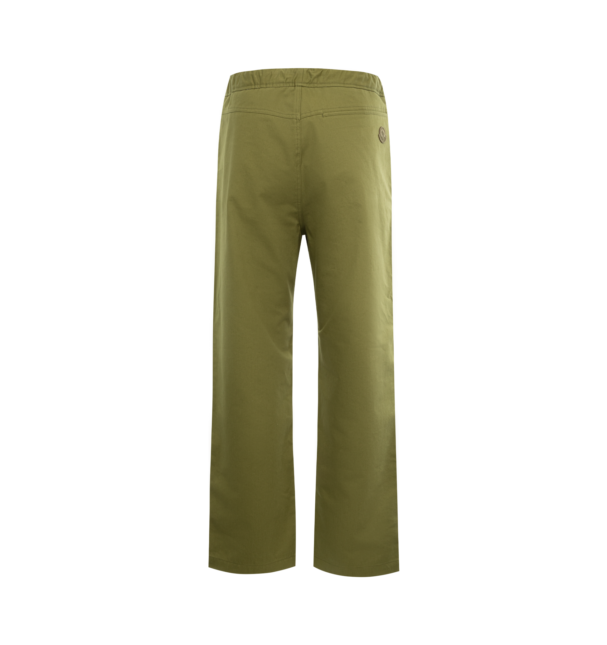 MONCLER Cotton Satin Pants featuring elastic waistband with drawstring fastening, zipper closure, side pockets, back welt pocket and felt logo patch. 100% cotton.