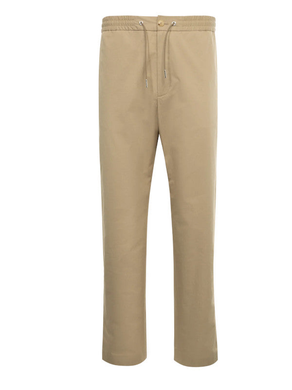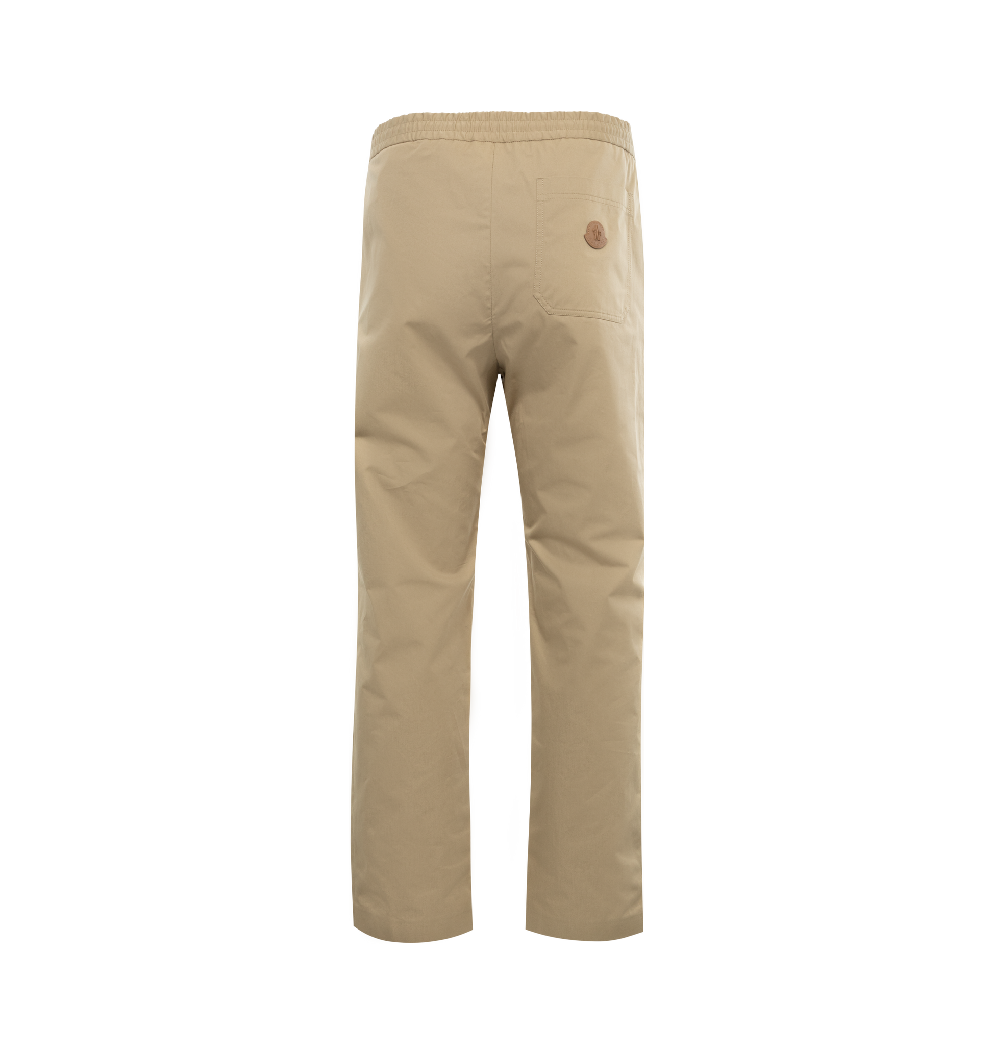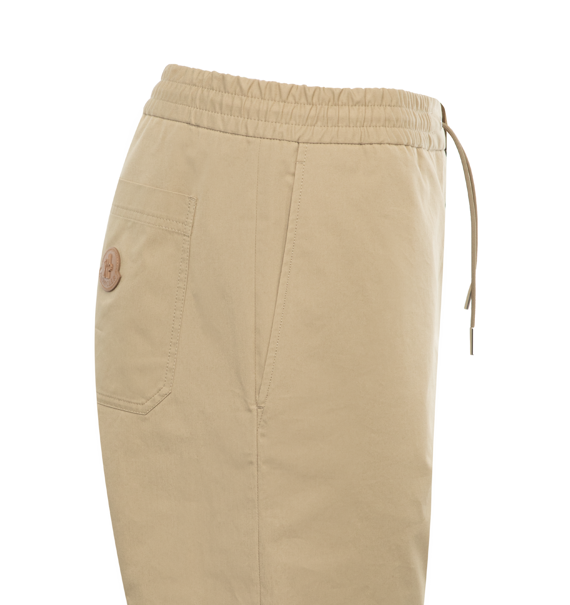 MONCLER Gabardine Jogging Pants featuring lightweight cotton gabardine, drawstring waist, zipper and button closure, side slant pockets, back patch pocket and leather logo patch. 100% cotton.