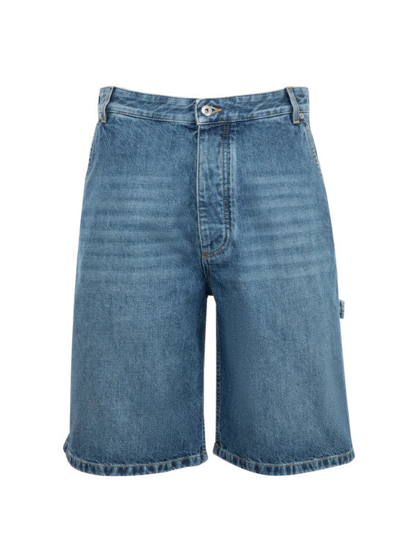 Bottega Veneta men's knee-length denim shorts with button-fly closure, front slash pockets, back patch pockets, hammer loop and belt loops. 100% Cotton. Made in Italy.