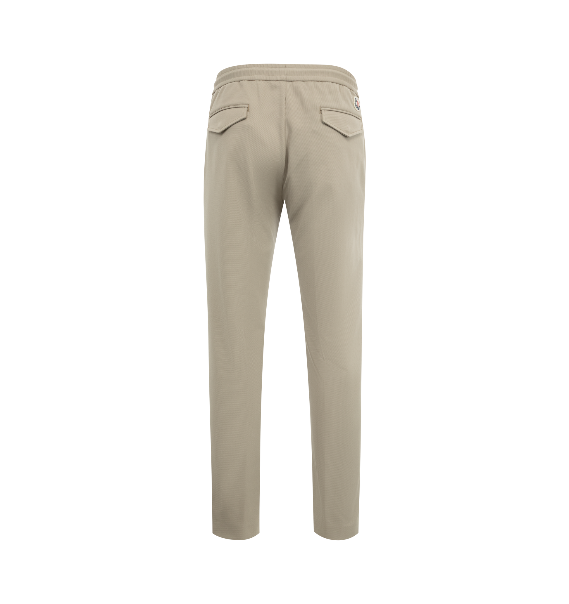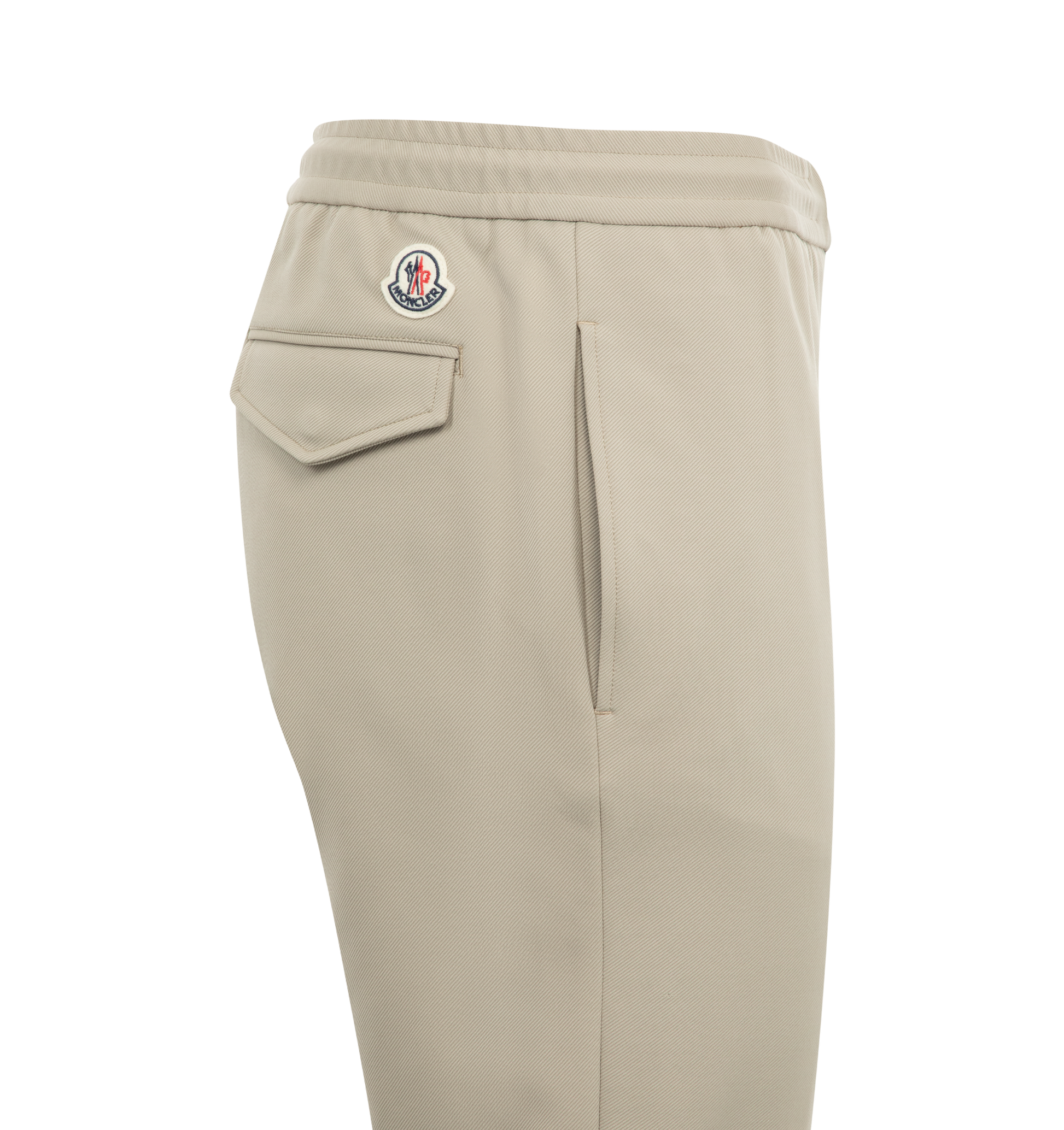 Moncler Polished Cotton Jogging Pants have a satin feel, zipper closure, drawstring waist, snap button back pockets, and a leather logo patch. 100% cotton.