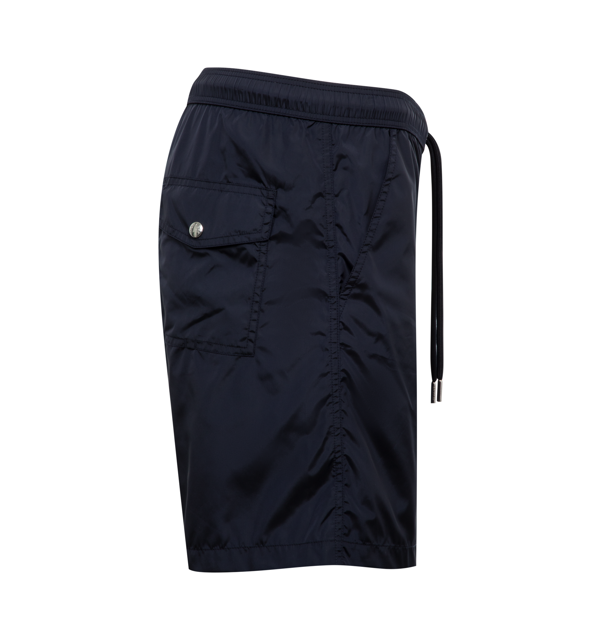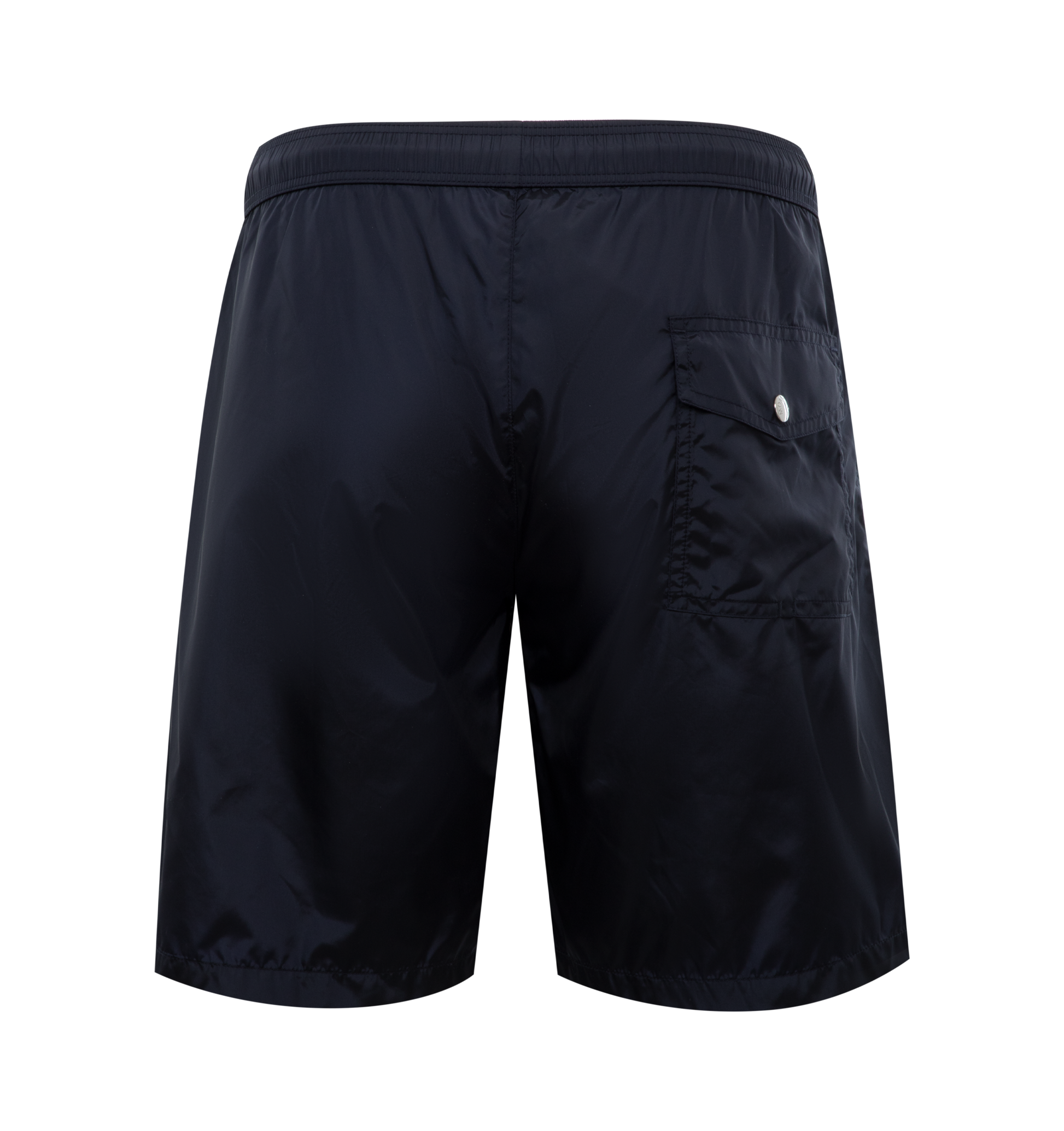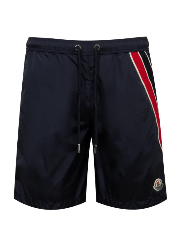 MONCLER Swim Trunks featuring nylon technique, mesh lining, waistband with drawstring fastening, tricolor trim at the front, pocket with snap button closure, inner pockets and silicone logo patch. 100% polyamide/nylon.