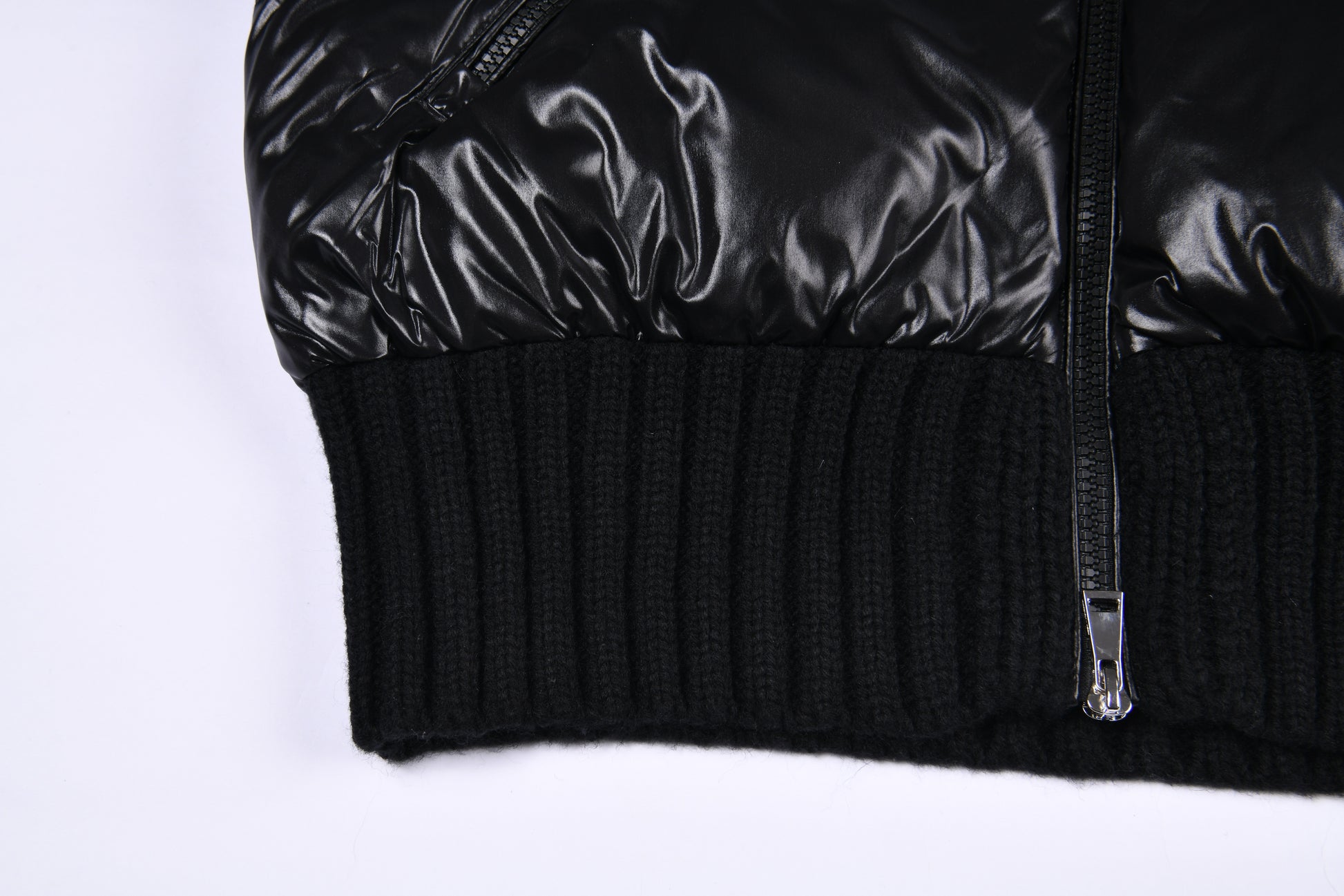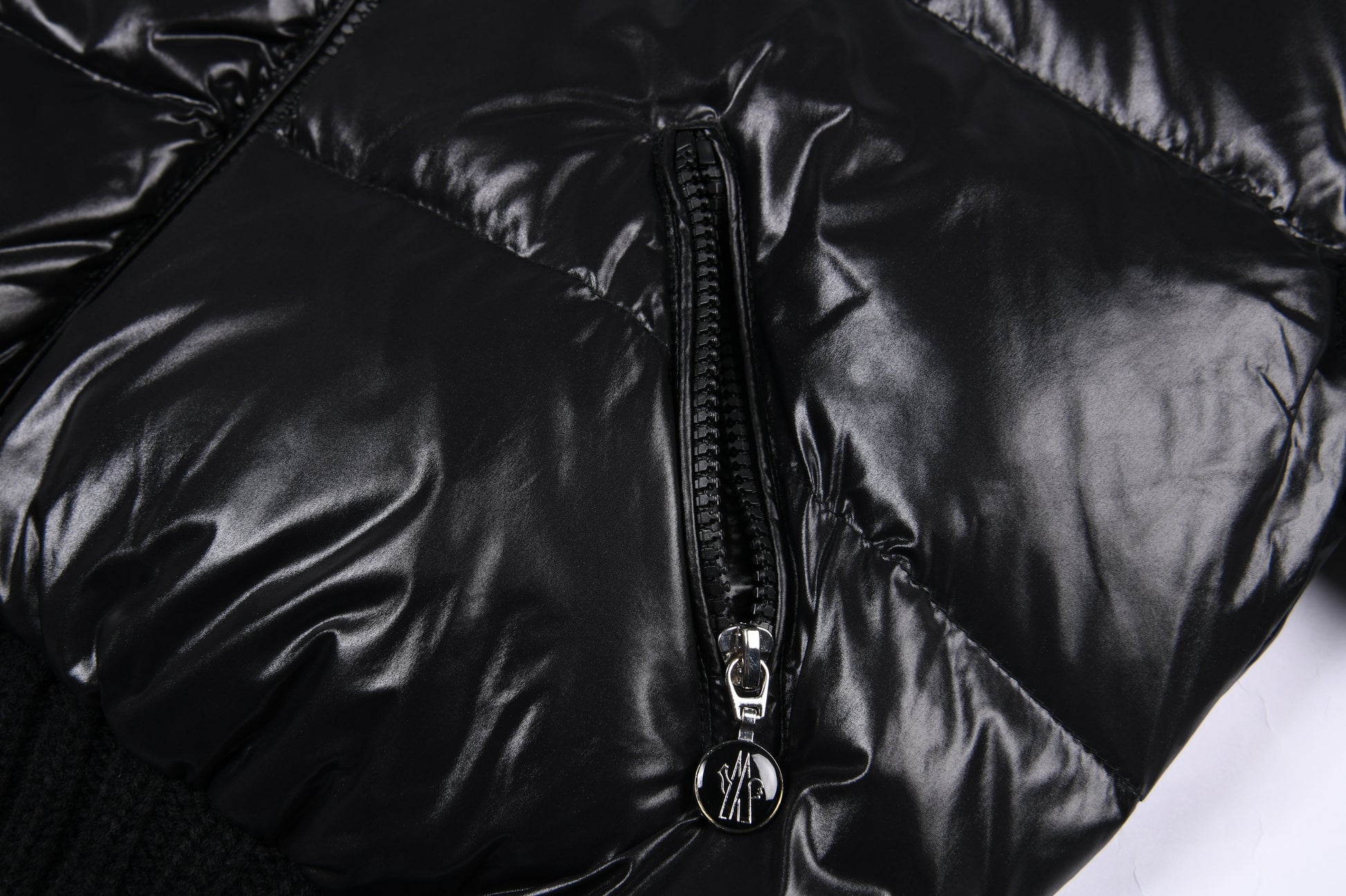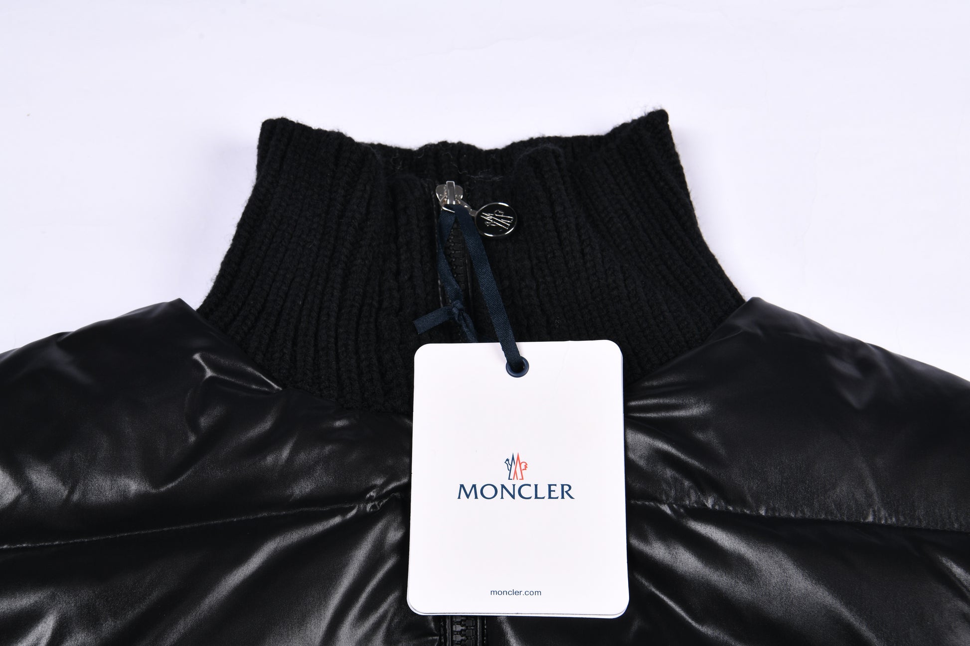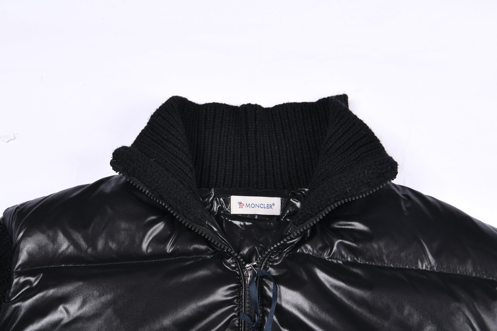 Elevate your outerwear collection with this refined Moncler jacket, seamlessly combining functionality with sophisticated design. This jacket features a glossy down-filled front panel, offering premium insulation and a sleek visual finish, while the knitted wool-blend sleeves and back provide softness, flexibility, and warmth.