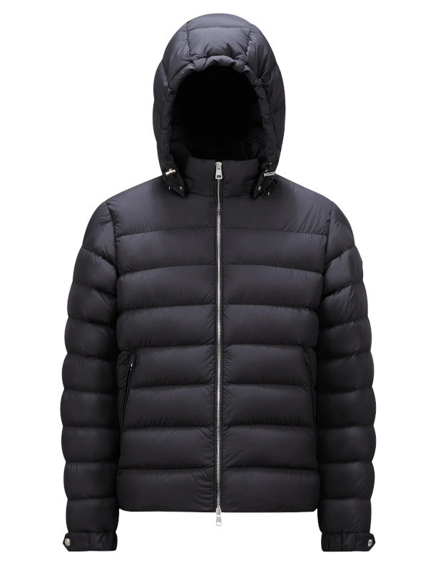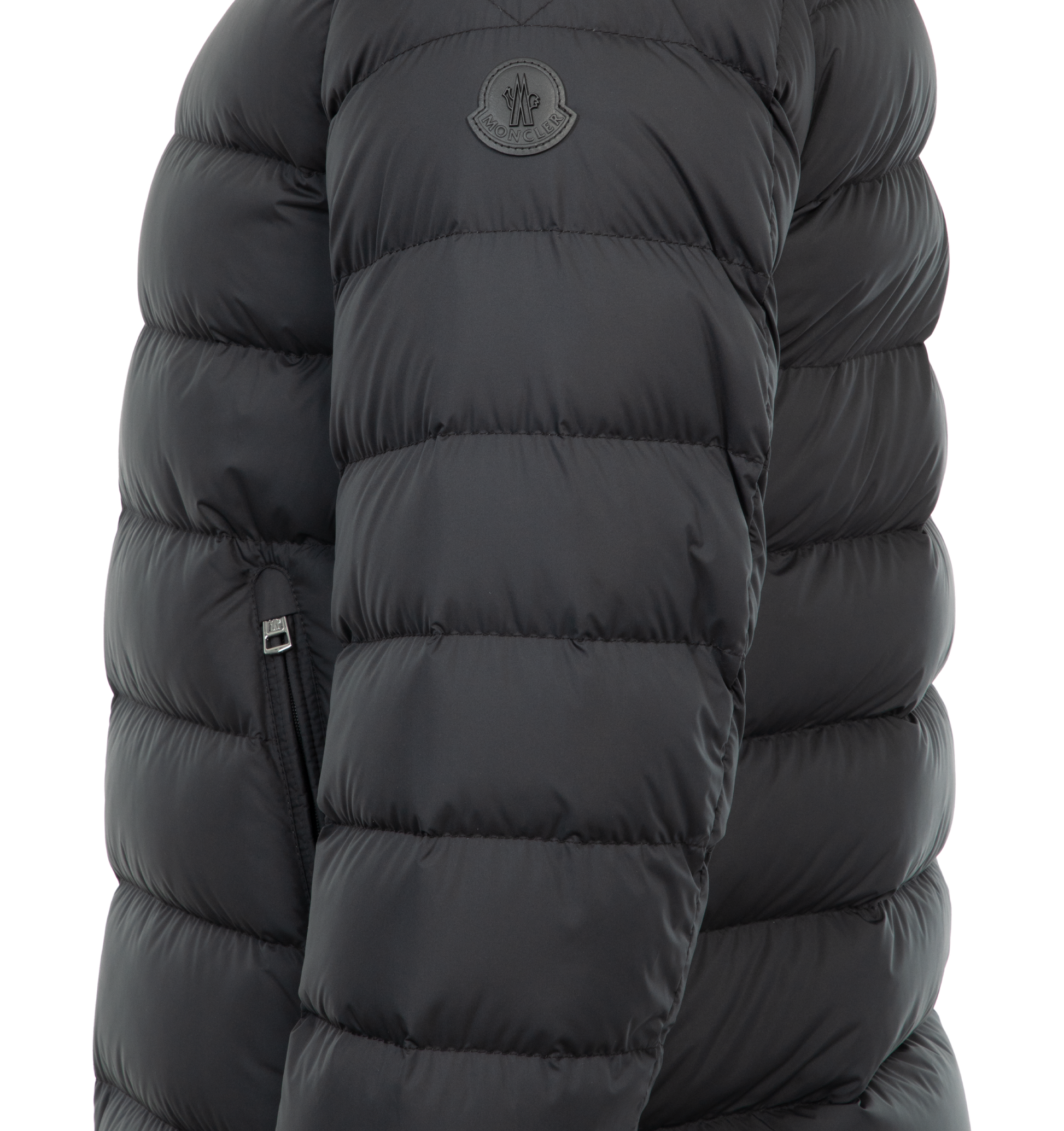 MONCLER Arneb Down Jacket featuring lightweight micro chic lining, down-filled, adjustable and detachable hood, zipper closure, zipped pockets, adjustable cuffs with snap button closure and leather logo. 100% polyester. Padding: 90% down, 10% feather.