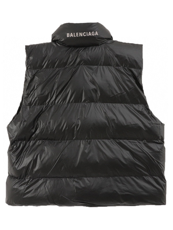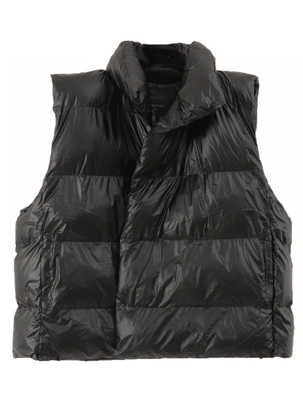 Upgrade your outerwear with the Balenciaga Puffer Vest, a sleek and modern take on cold-weather essentials. This black, high-shine vest is crafted with a quilted design that provides lightweight yet effective insulation. Featuring an oversized collar for added warmth and style, this versatile puffer vest is perfect for layering over sweaters or under jackets for an effortlessly cool look. The minimalist design with subtle detailing aligns with Balenciaga's signature aesthetic, making it a luxurious addition to any wardrobe. Ideal for those seeking both comfort and contemporary style in one piece.