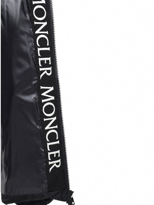 Stay cozy and stylish with this Moncler Logo-Trim Puffer Jacket, designed for both warmth and luxury. This sleek black puffer jacket features signature Moncler branding along the interior trim, adding a bold designer touch every time you open it. The jacket is filled with premium down insulation, providing exceptional warmth while remaining lightweight. Its glossy interior finish complements the matte exterior, delivering a sophisticated contrast. Ideal for cold weather, this Moncler puffer is both functional and fashionable, perfect for elevating your winter wardrobe.