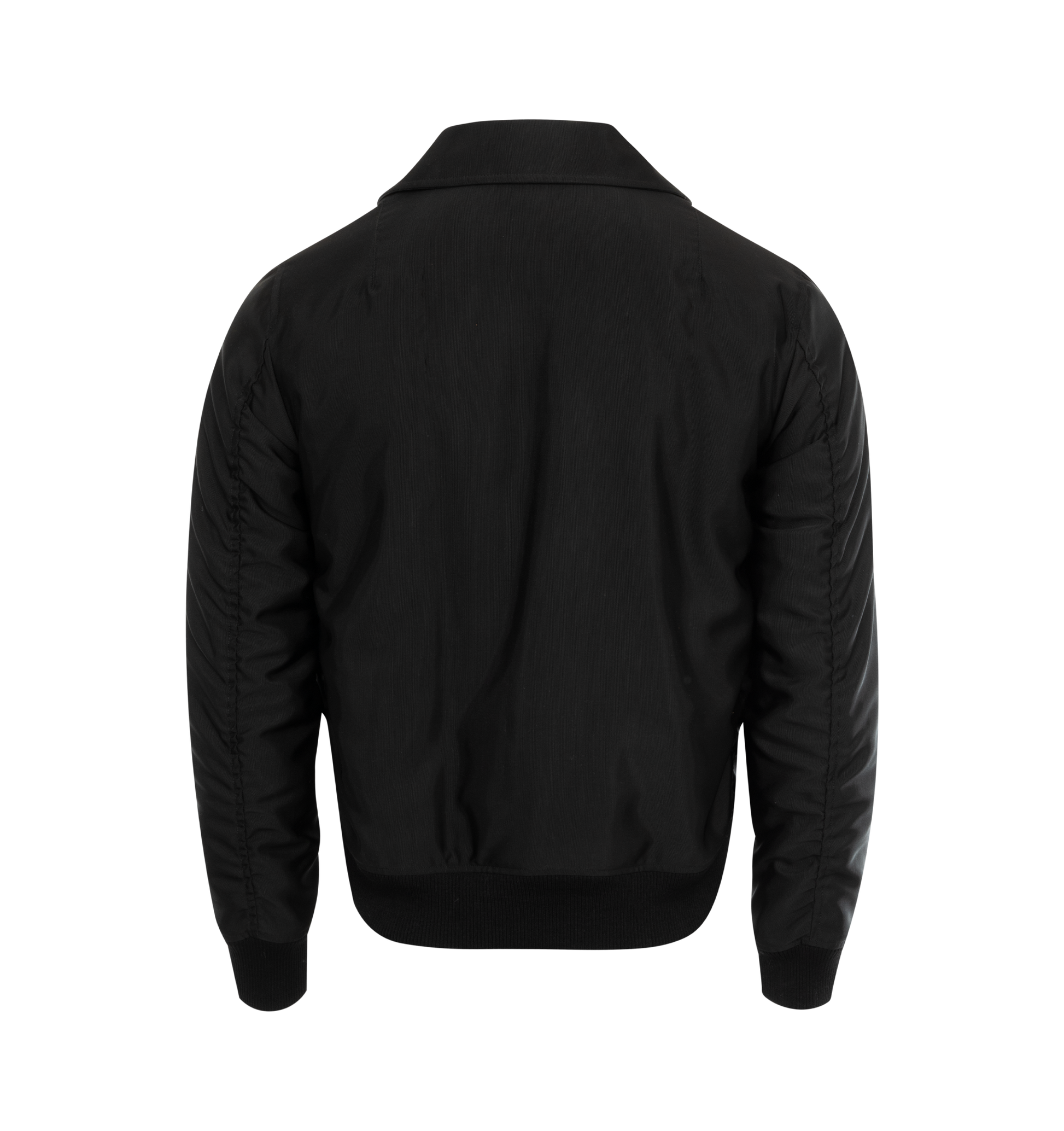 SAINT LAURENT Bomber Jacket featuring zip up front, pointed collar, ribbed cuff and hem, two jetted pockets with button flap and nylon lining. 53% acetate, 47% wool.
