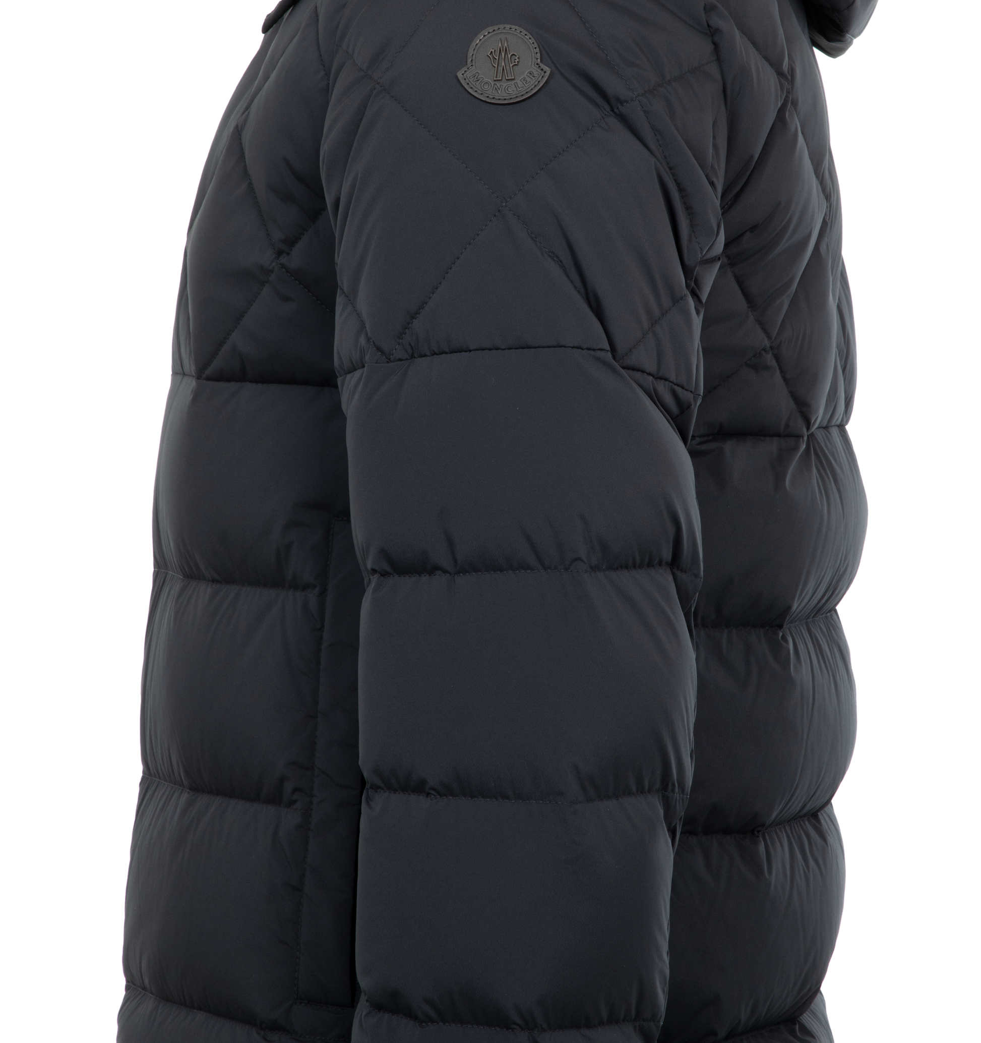 MONCLER Cecaud Jacket featuring stretch nylon lining, down-filled, detachable and adjustable hood with snap buttons and drawstring fastening, diamond-quilted yoke, zipper closure, zipped pockets, adjustable cuffs with snap buttons and leather logo. 85% polyamide/nylon, 15% elastane/spandex. Padding: 90% down, 10% feather.