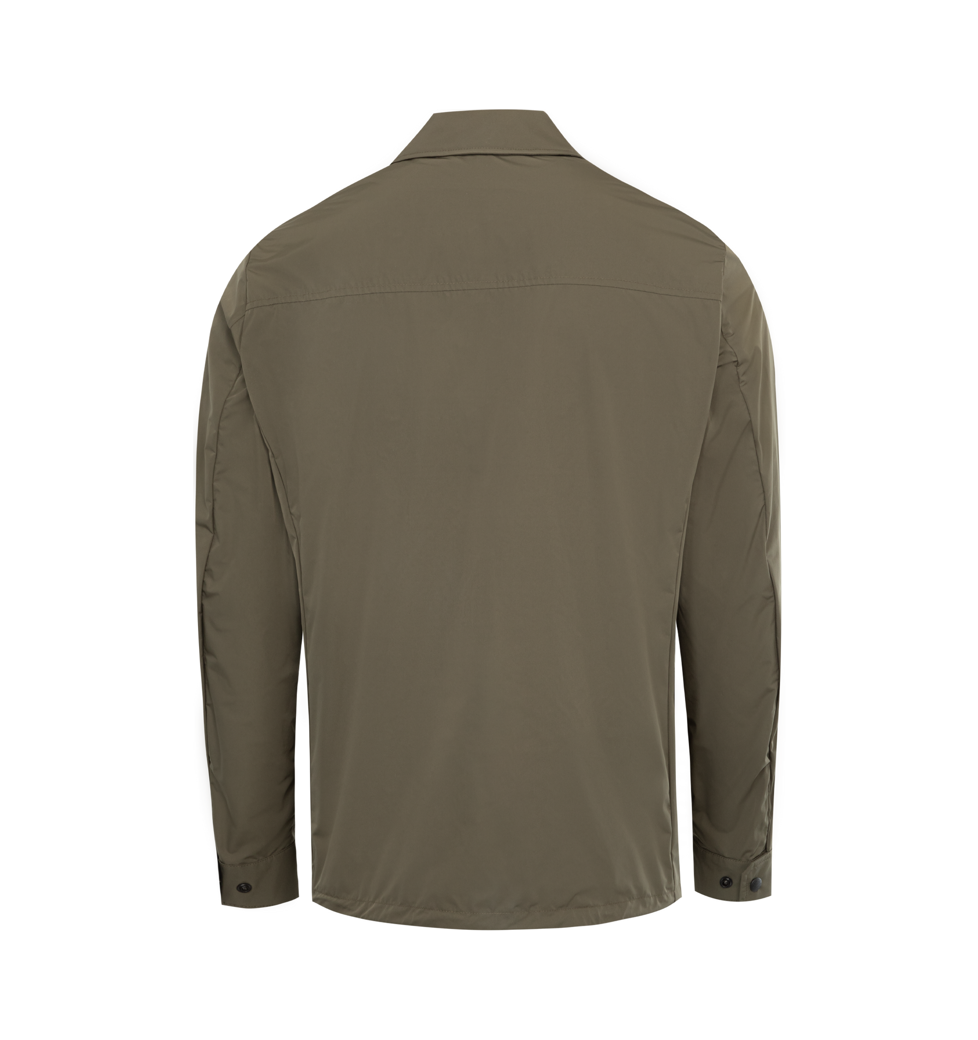 MONCLER Ferma Shirt Jacket featuring micro soft polyester, rainwear lining, zipper and snap button closure, zipped inner and outer pockets, adjustable cuffs, hem with elastic drawstring fastening and inner label with fabric description. 100% polyester.