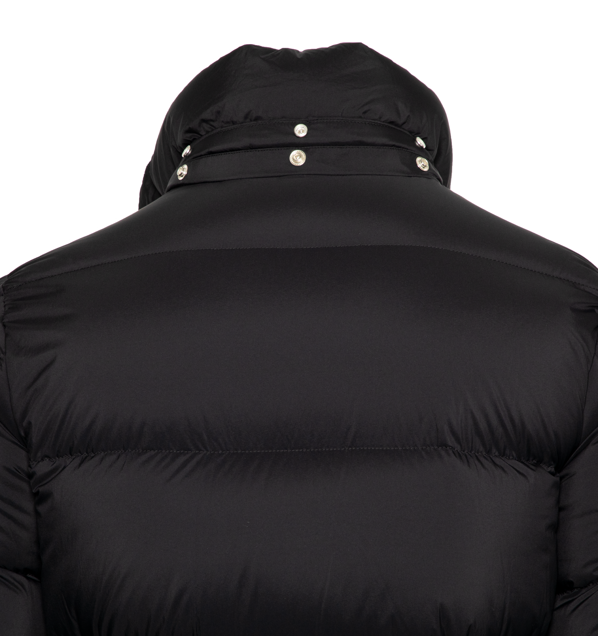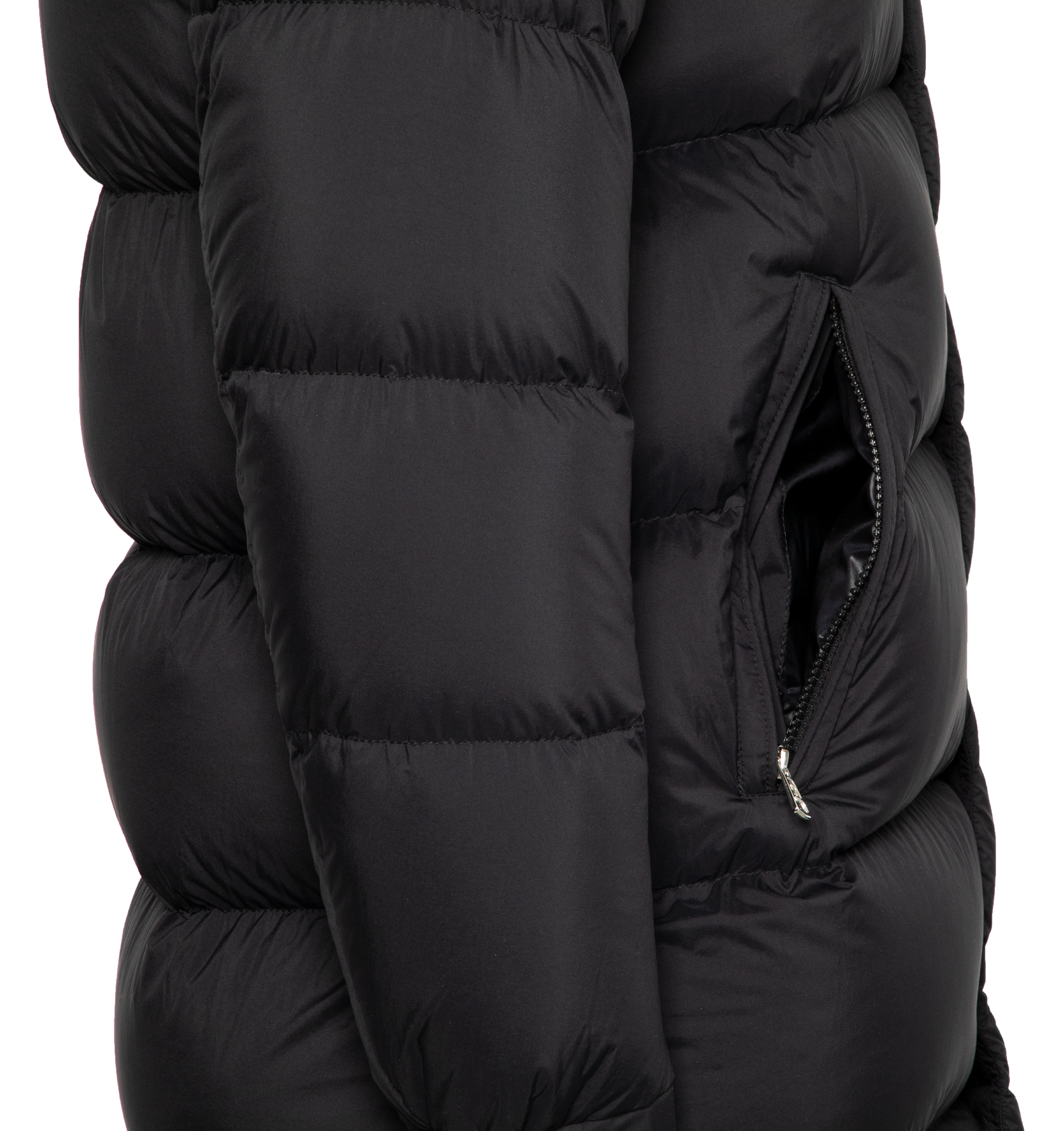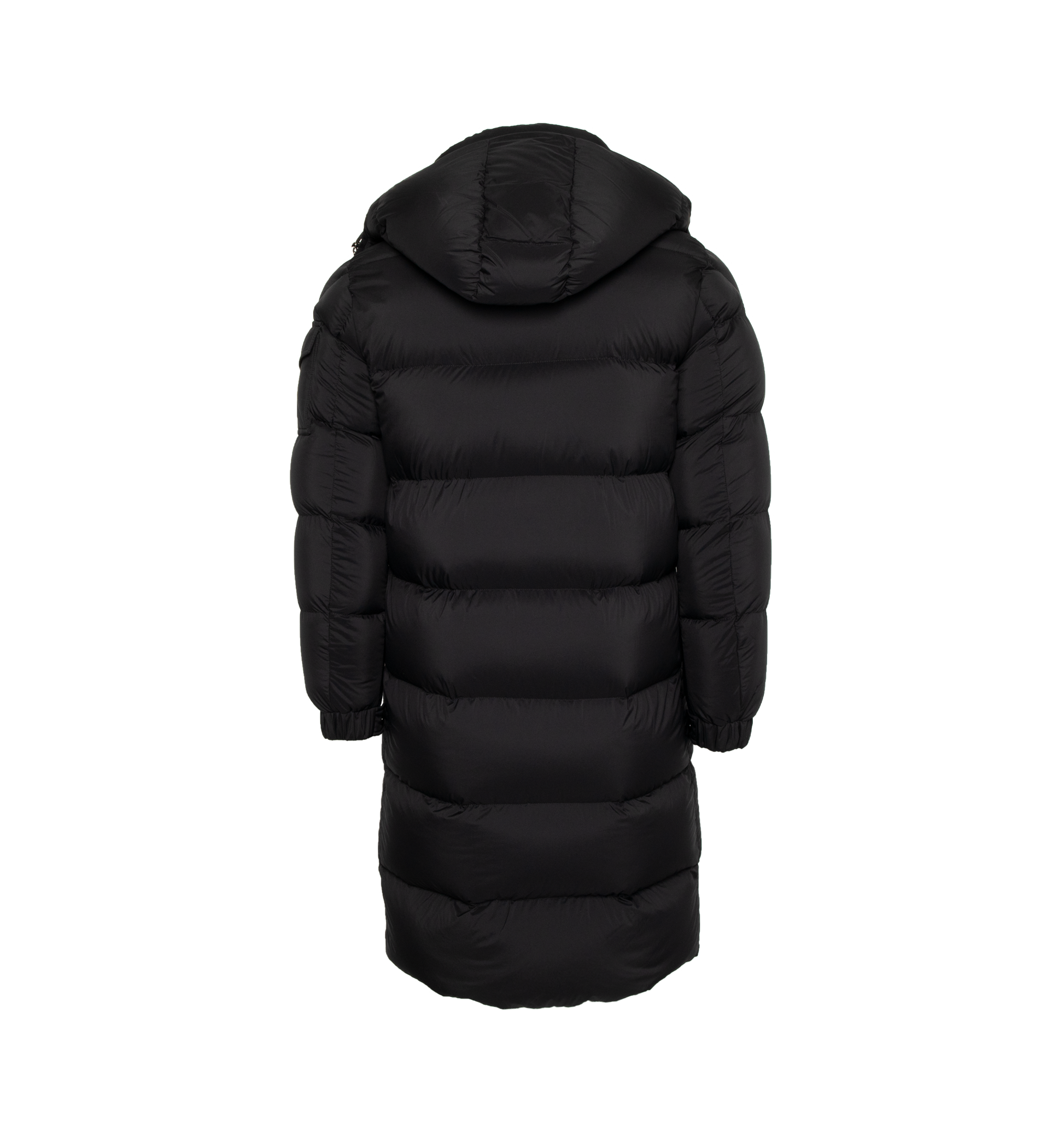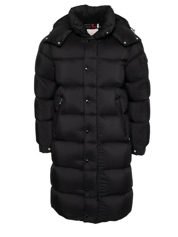 MONCLER Hanoverian Long Down Jacket featuring longue saison lining, down-filled, detachable hood, zipper and snap button closure, zipped pockets, patch pocket on the sleeve, adjustable cuffs and hem with drawstring fastening. 100% polyamide/nylon. Padding: 90% down, 10% feather.