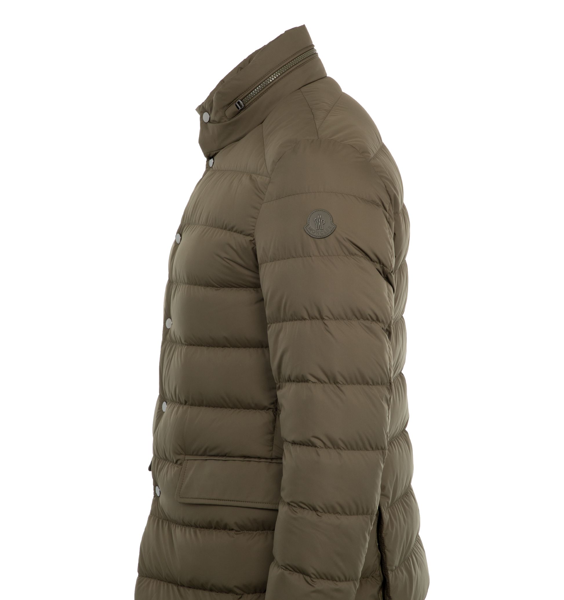 MONCLER Malinvern Down Jacket featuring AirSoft fabric, micro chic nylon lining, down-filled, adjustable pull-out hood, zipper and snap button closure, zipped pockets, inner patch pocket with snap button closure, back slits with snap button closure, hem with elastic drawstring fastening, adjustable cuffs, fabric description label and leather logo patch. 100% polyester. Padding: 90% down, 10% feather.