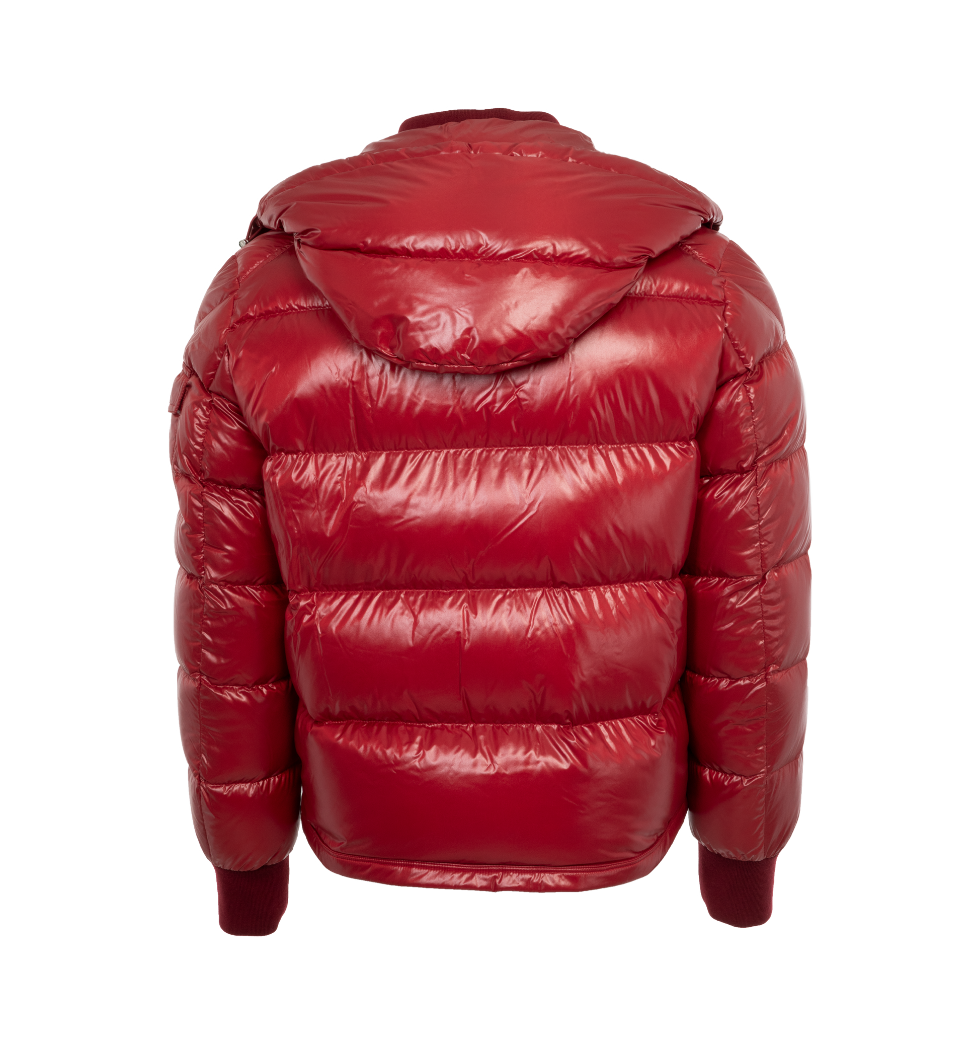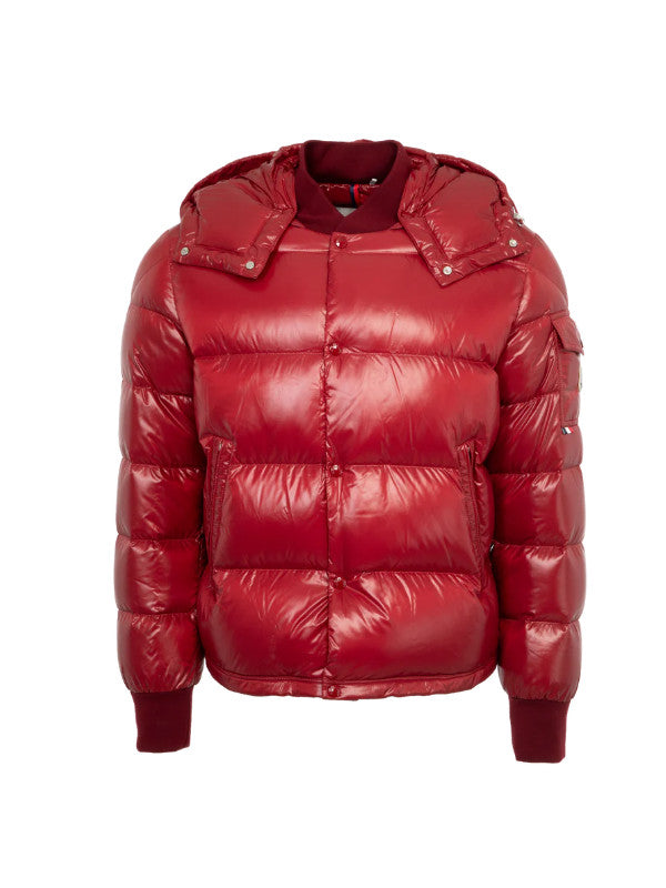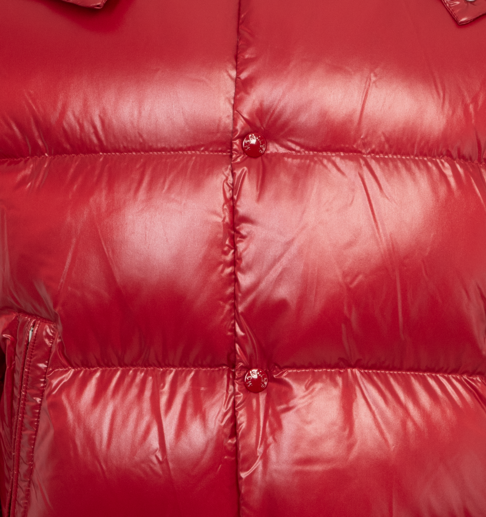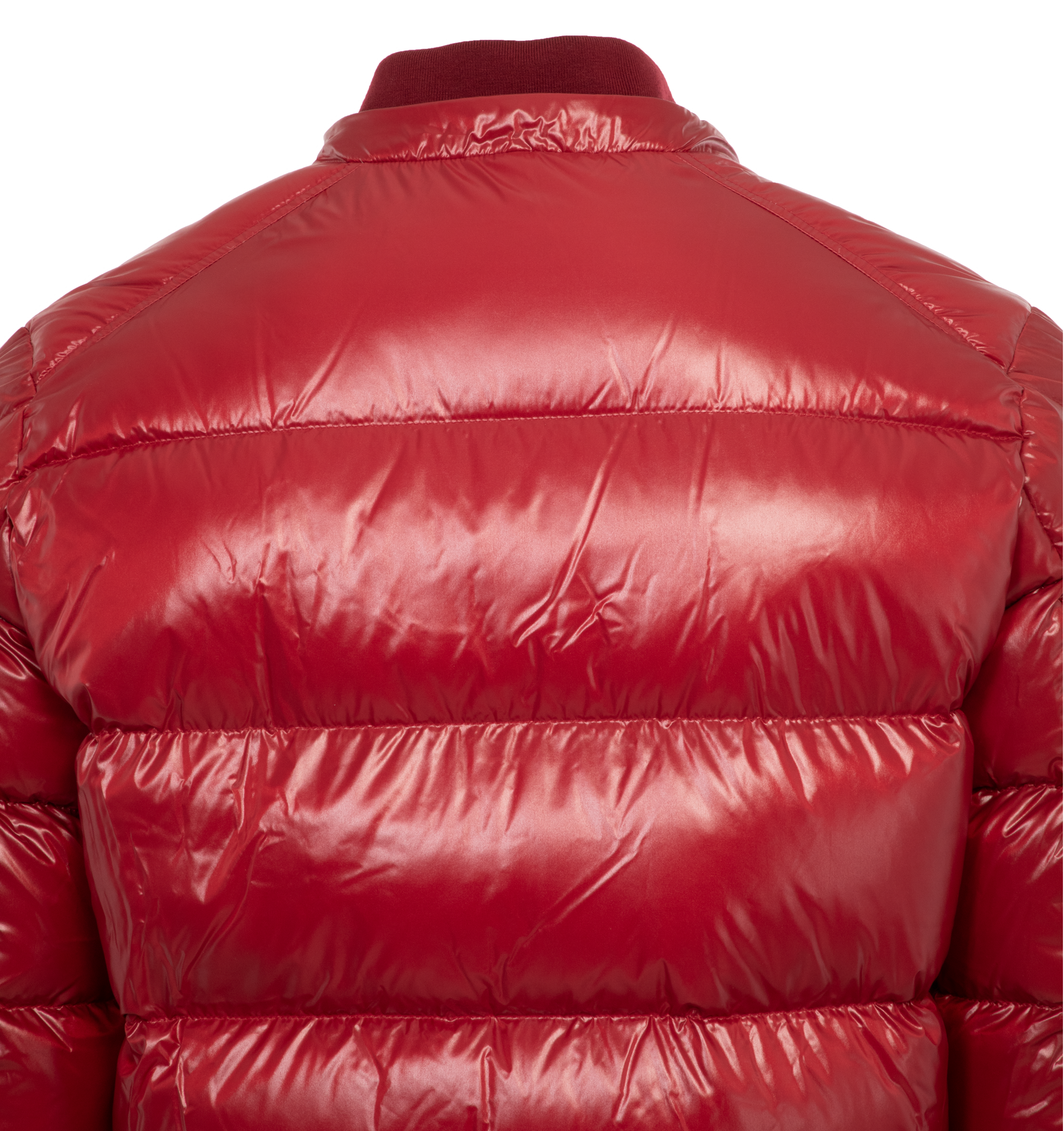 MONCLER Maljasset Bomber Jacket featuring nylon laqué lining, down-filled, detachable and adjustable hood, collar with snap button closure, zipper and snap button closure, sleeve pocket with snap button closure, zipped pockets, hem with elastic drawstring fastening and knit trim. 100% polyamide/nylon. Padding: 90% down, 10% feather.
