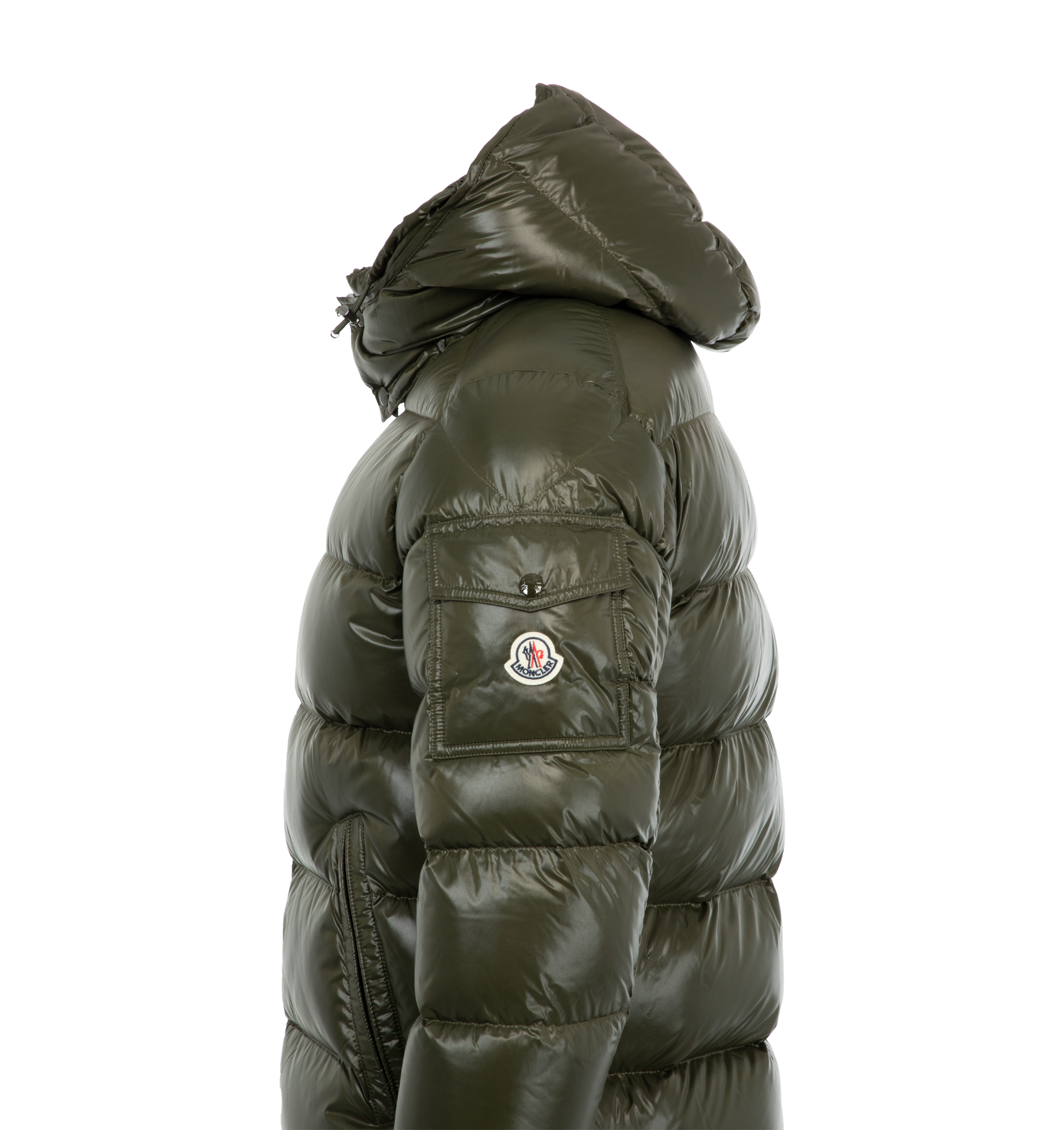MONCLER Maya Jacket featuring nylon laqué lining, down-filled with boudin quilting, detachable hood with snap buttons, adjustable with drawstring fastening, two-way zipper closure, zipped pockets, adjustable, elasticized cuffs with snap buttons, hem with drawstring fastening, flap patch pocket on sleeve and felt Moncler logo on sleeve. 100% polyamide/nylon. Padding: 90% down, 10% feather.