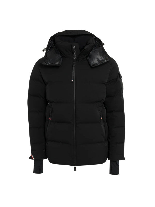 MONCLER GRENOBLE MONTGETECH JACKET featuring nylon lining, down-filled, bonded boudin, detachable hood with snap buttons, adjustable with drawstring fastening, fleece inner collar, fabric number transfer, YKK® Aquaguard® Highly Water Resistant zipper closure, ski pass pocket with snap button closure, exterior pockets with YKK® Aquaguard® Highly Water Resistant zipper closure, interior media pocket, windproof powder skirt, stretch jersey wrist gaiters and ski pass pocket. 87% polyamide/nylon, 13% elastane/spandex. Padding: 90% down, 10% feather.