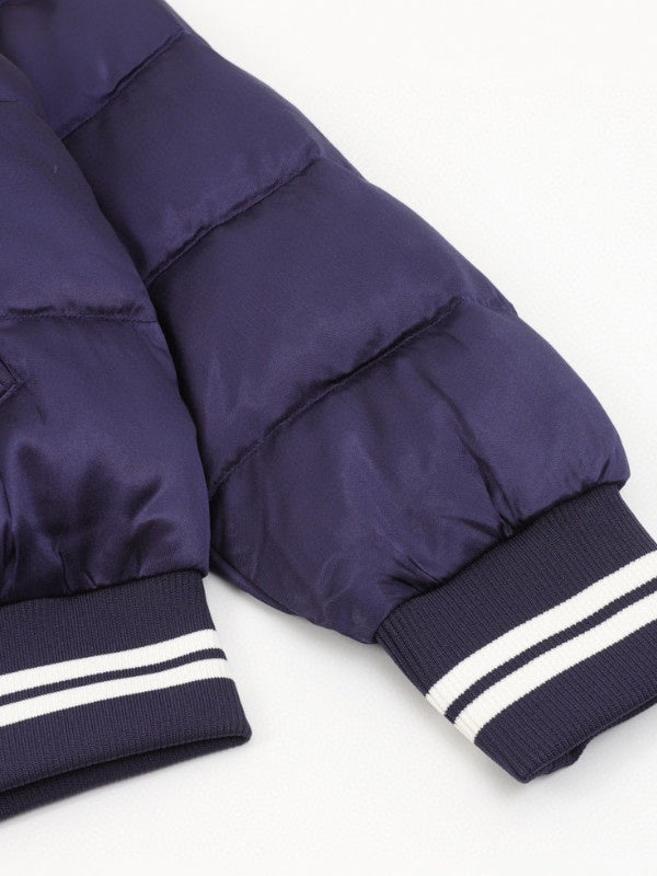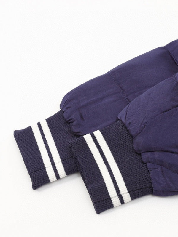 - Stylish Design: Features a varsity-style ribbed collar, cuffs, and hem, giving it a sporty yet refined look.