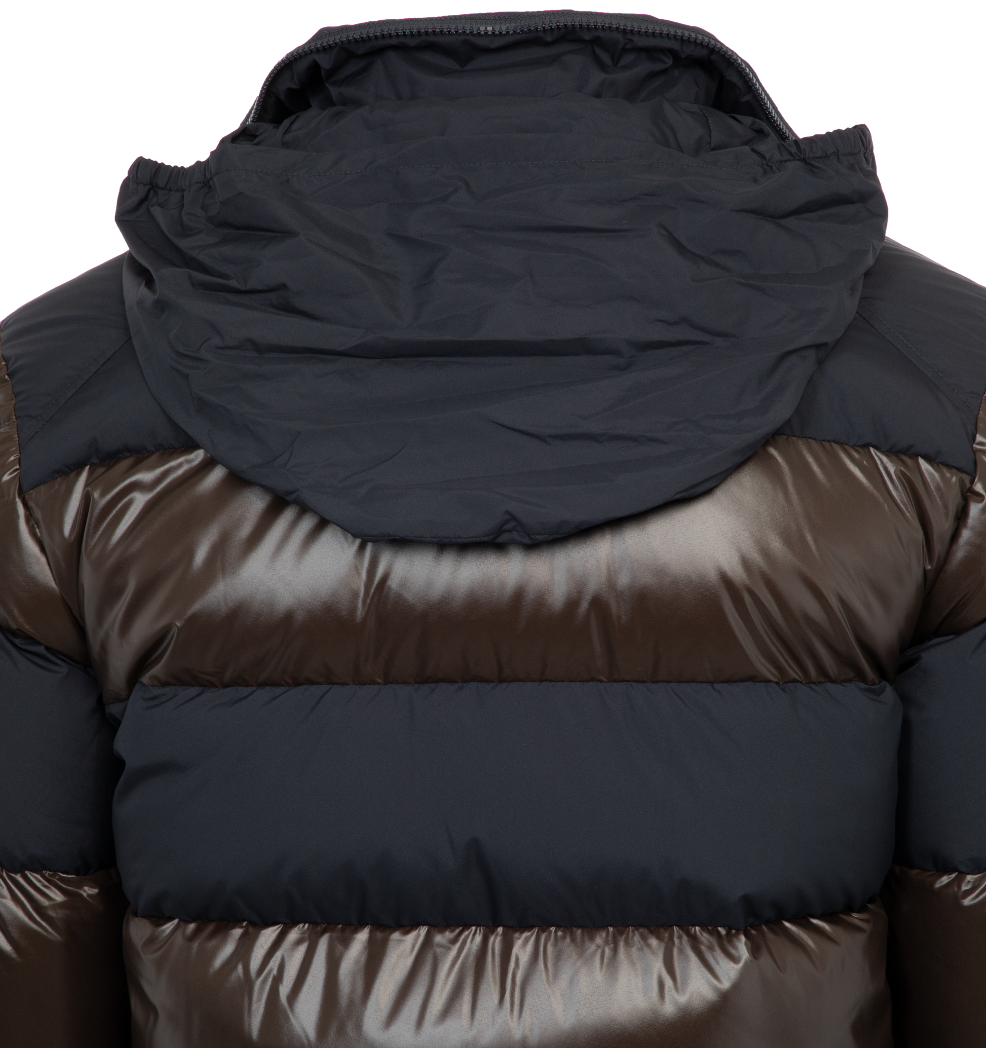MONCLER Peclet Jacket featuring rainwear lining, reversible, down-filled, pull-out hood, reversible zipper closure, pockets with zipper and snap button closure, sleeve pockets with snap button closure, hem with elastic drawstring fastening and silicone logo label. 100% polyester. Padding: 90% down, 10% feather.