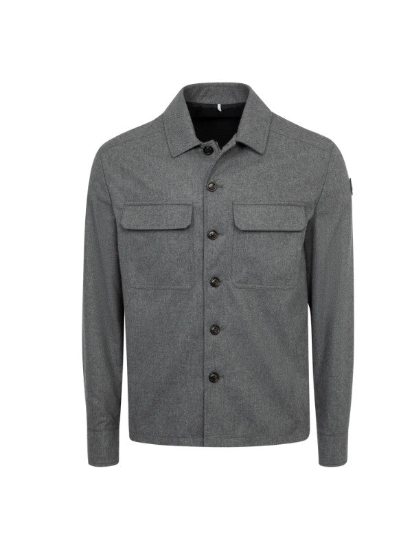 MONCLER Shirt Jacket featuring button front closure, two front patch pockets with flap closure, collar and logo patch.