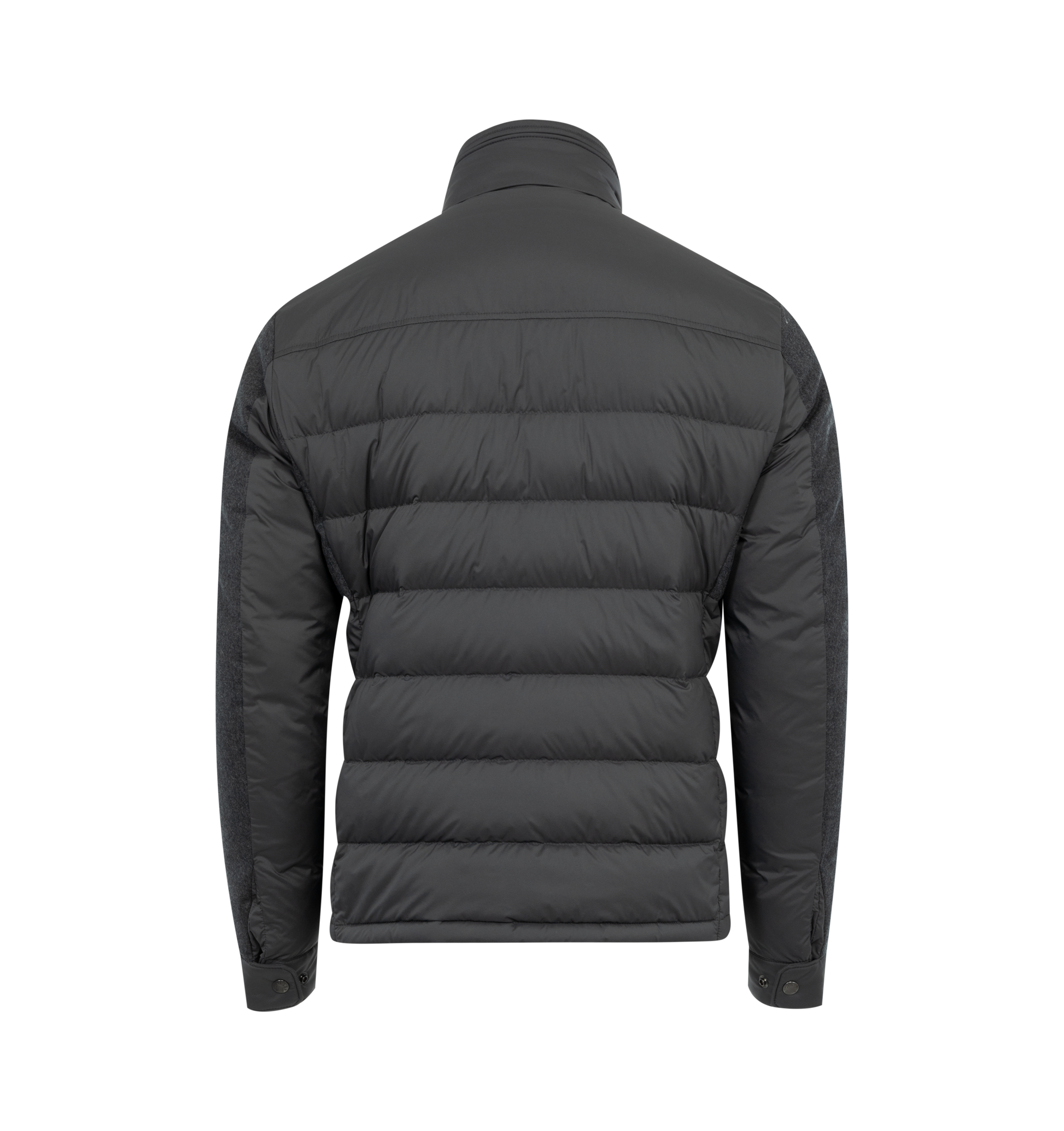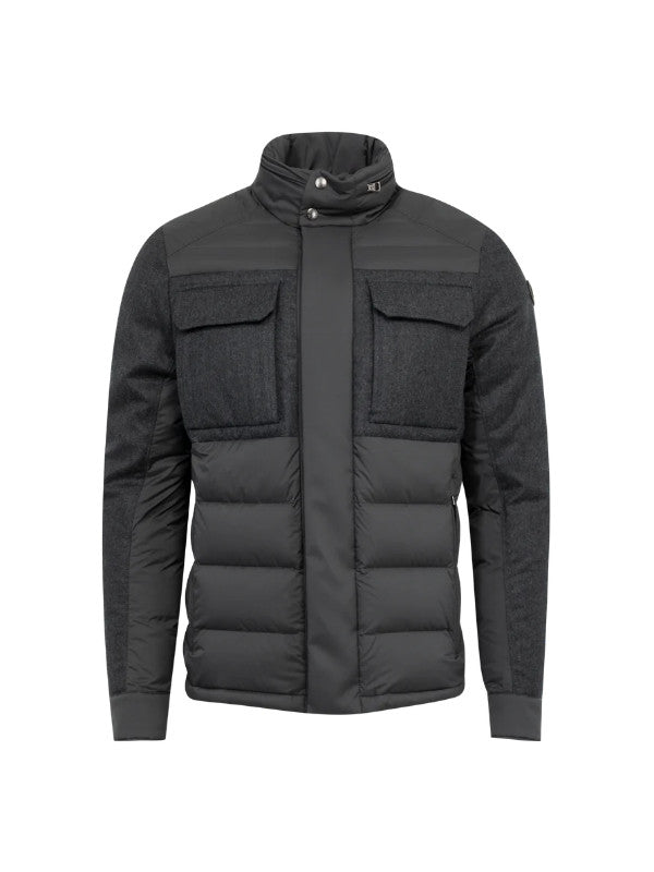 MONCLER Vallanta Jacket featuring stand collar, down-filled, concealed zipper closure, felt flap patch pockets, elastic hem and button cuffs. Polyamide/nylon. Padding: 90% down, 10% feather.