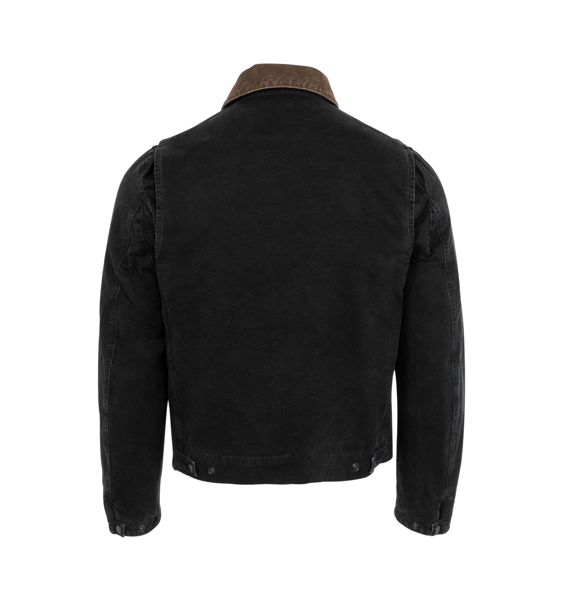 Saint Laurent Men's Work jacket with a knit lining, featuring a pointed collar, kangaroo pockets, adjustable snap-button tabs at the back waist, concealed front snap-button and zip closure and two inner jetted pockets. 100% COTTON. Made in Italy.