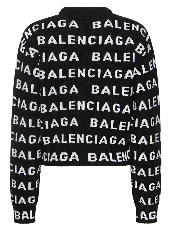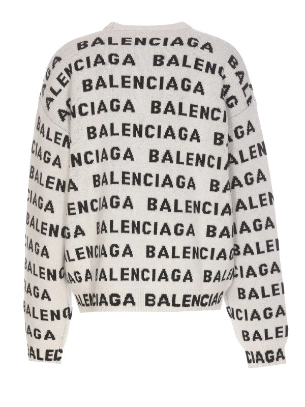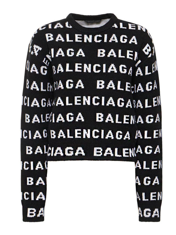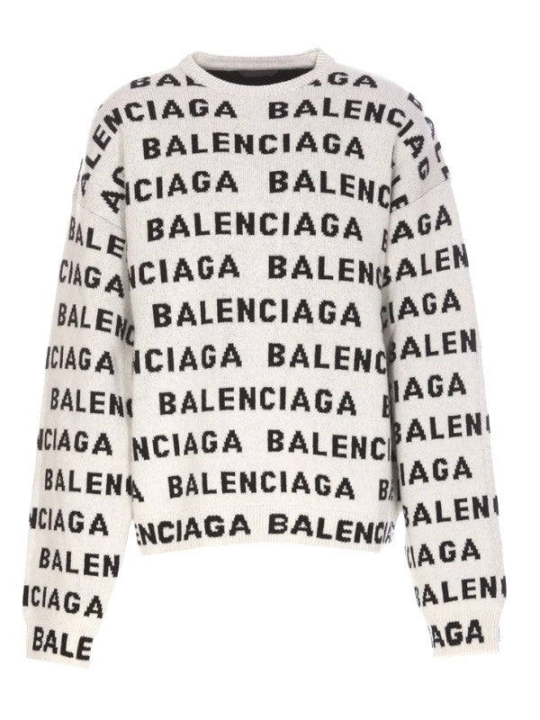 Upgrade your winter wardrobe with this stylish Balenciaga sweater, featuring an all-over logo jacquard pattern that exudes luxury and bold style. Made from high-quality materials, this cozy knit sweater offers a relaxed fit with a classic crew neckline, long sleeves, and ribbed cuffs and hem. The repeated "Balenciaga" branding makes a striking statement, while the soft fabric ensures warmth and comfort. Available in black and white color options, it’s a versatile piece that pairs perfectly with jeans or tailored pants for an effortlessly chic look.