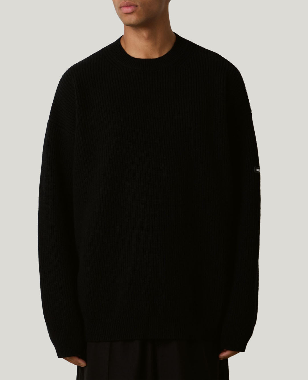 Understated luxury at its finest. This minimalist Balenciaga sweater is crafted in a soft, heavyweight ribbed wool knit, offering both warmth and refinement. The sleek black design is elevated with a small Balenciaga logo patch discreetly placed on the sleeve—delivering iconic branding without overpowering the clean silhouette.