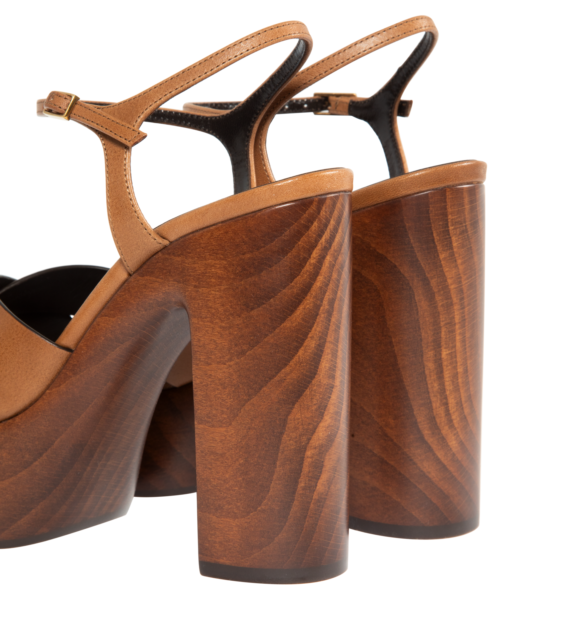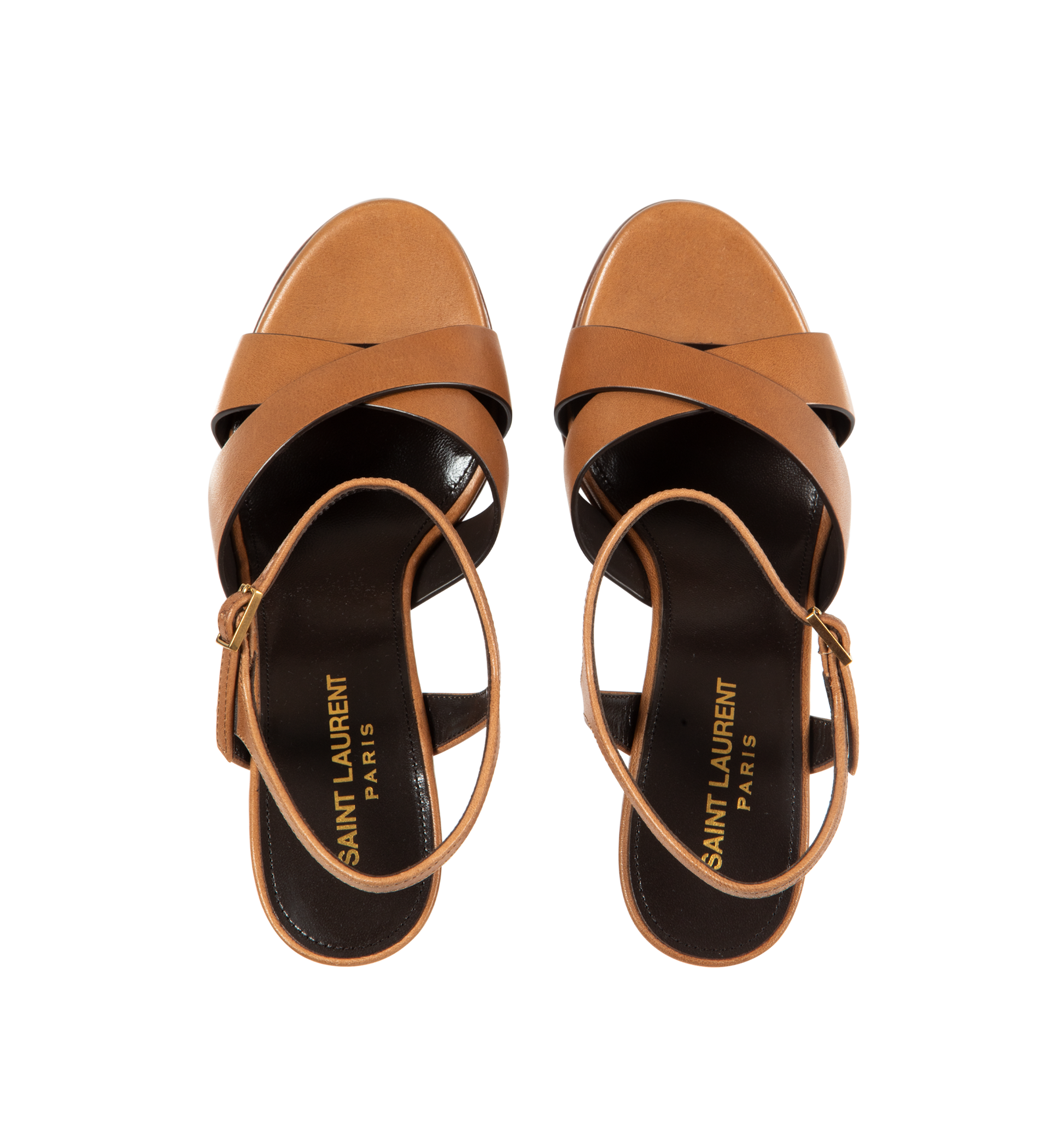 SAINT LAURENT Bianca Platform Sandal featuring an adjustable ankle strap, wooden block heel and leather sole. 4.9 inches total heel height. 1.6 inch platform. 100% calfskin leather.