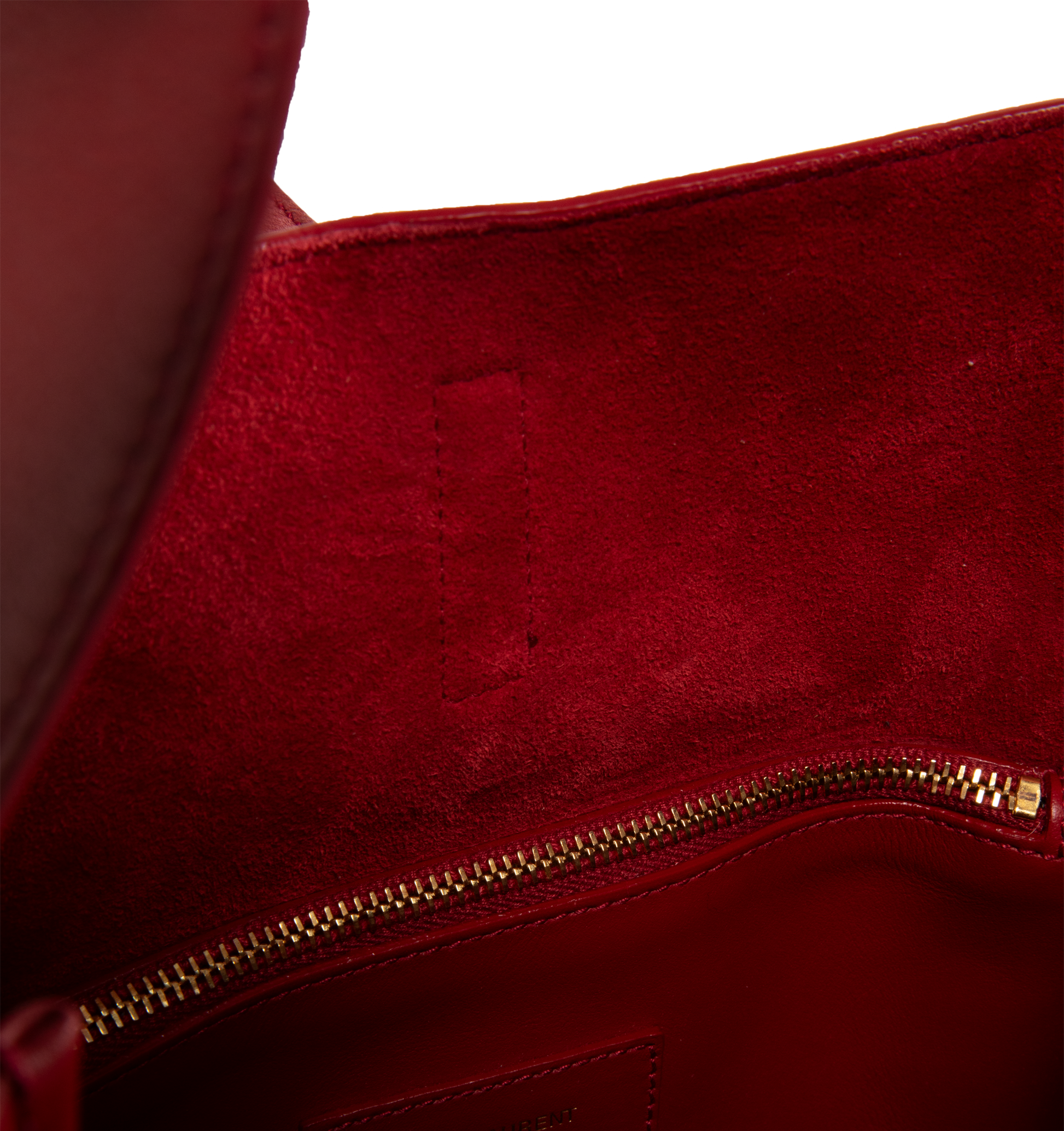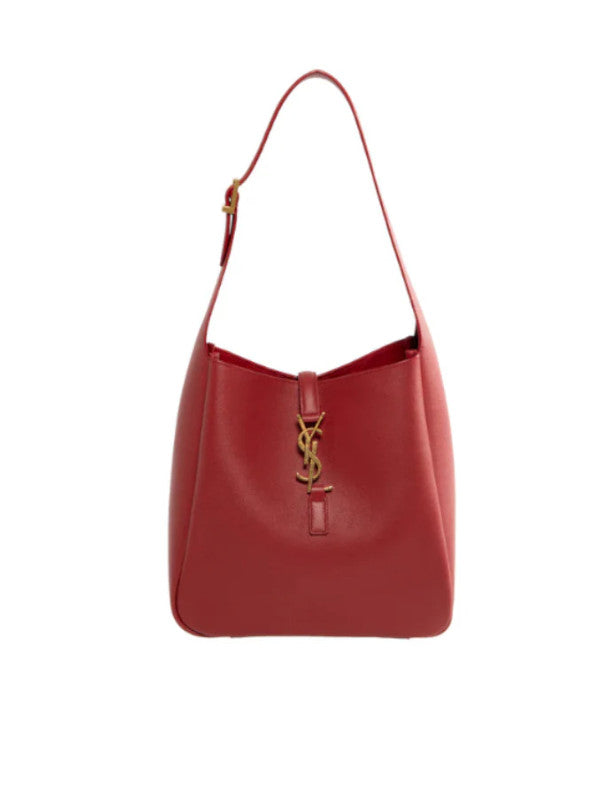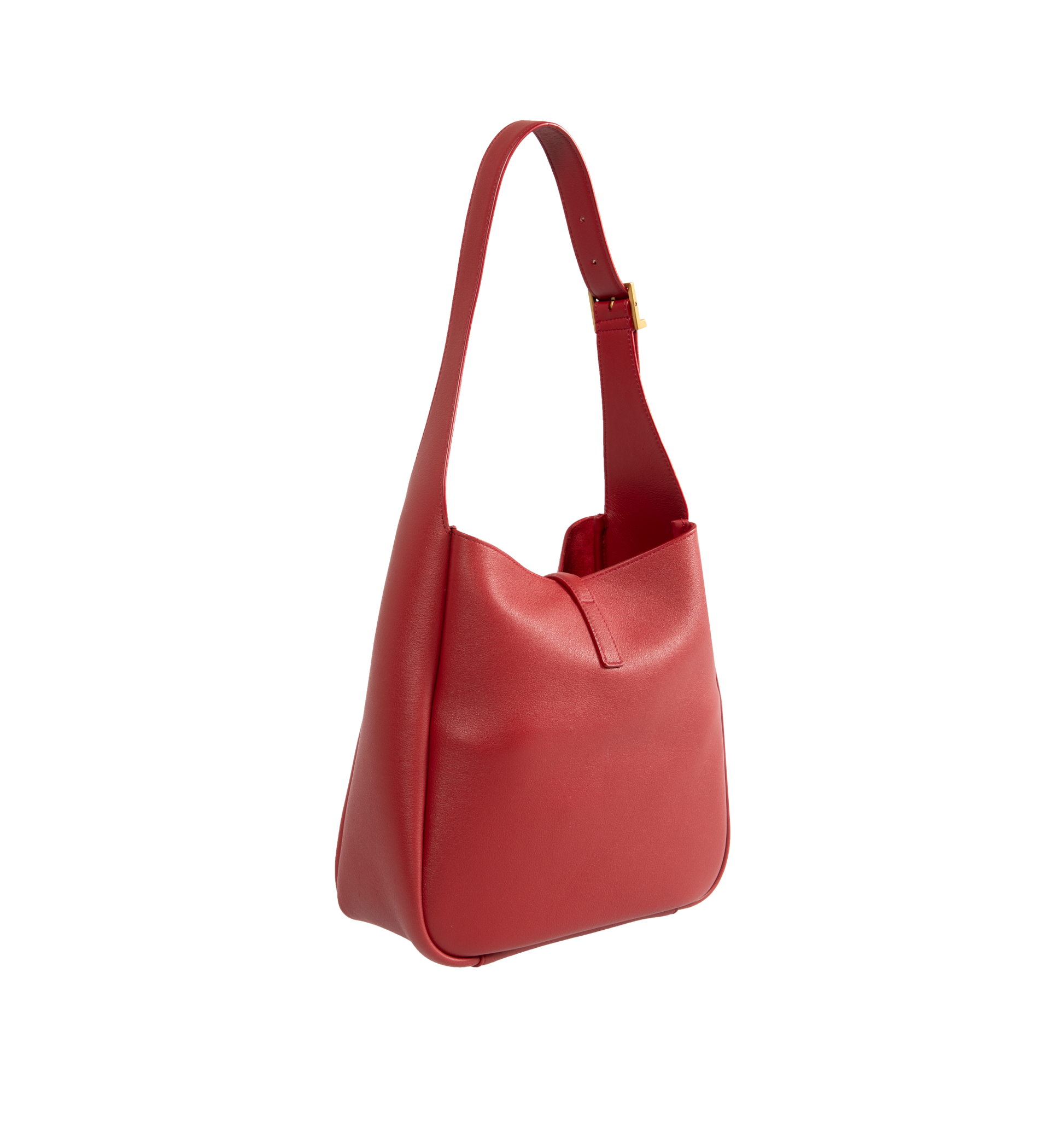 SAINT LAURENT Le A 7 soft small shoulder bag has a metal Cassandre hook closure, bronze-tone hardware, and interior zip pocket. Suede lining. 100% calfskin leather. Dimensions: 9 X 8.7 X 3.5 inches. Made in Italy.