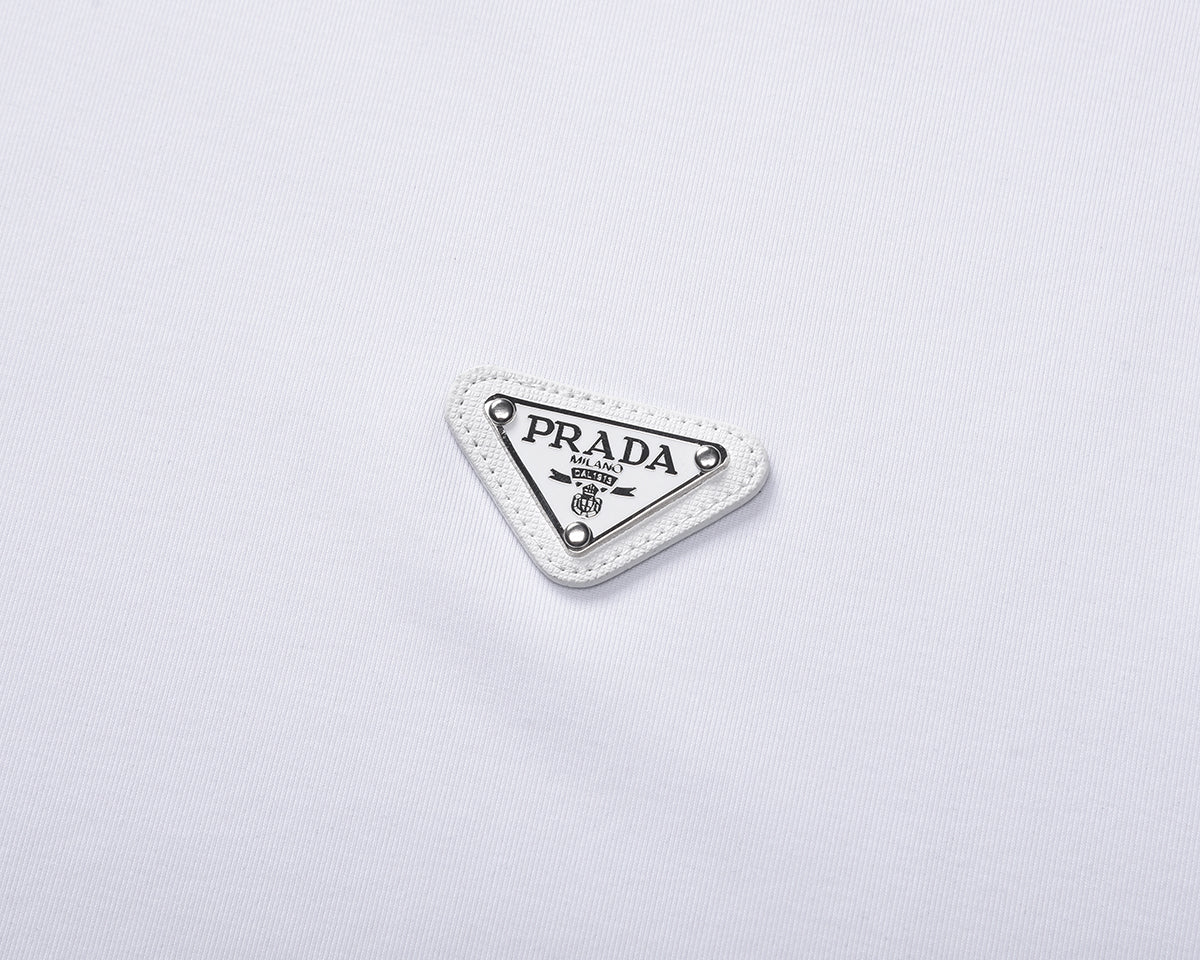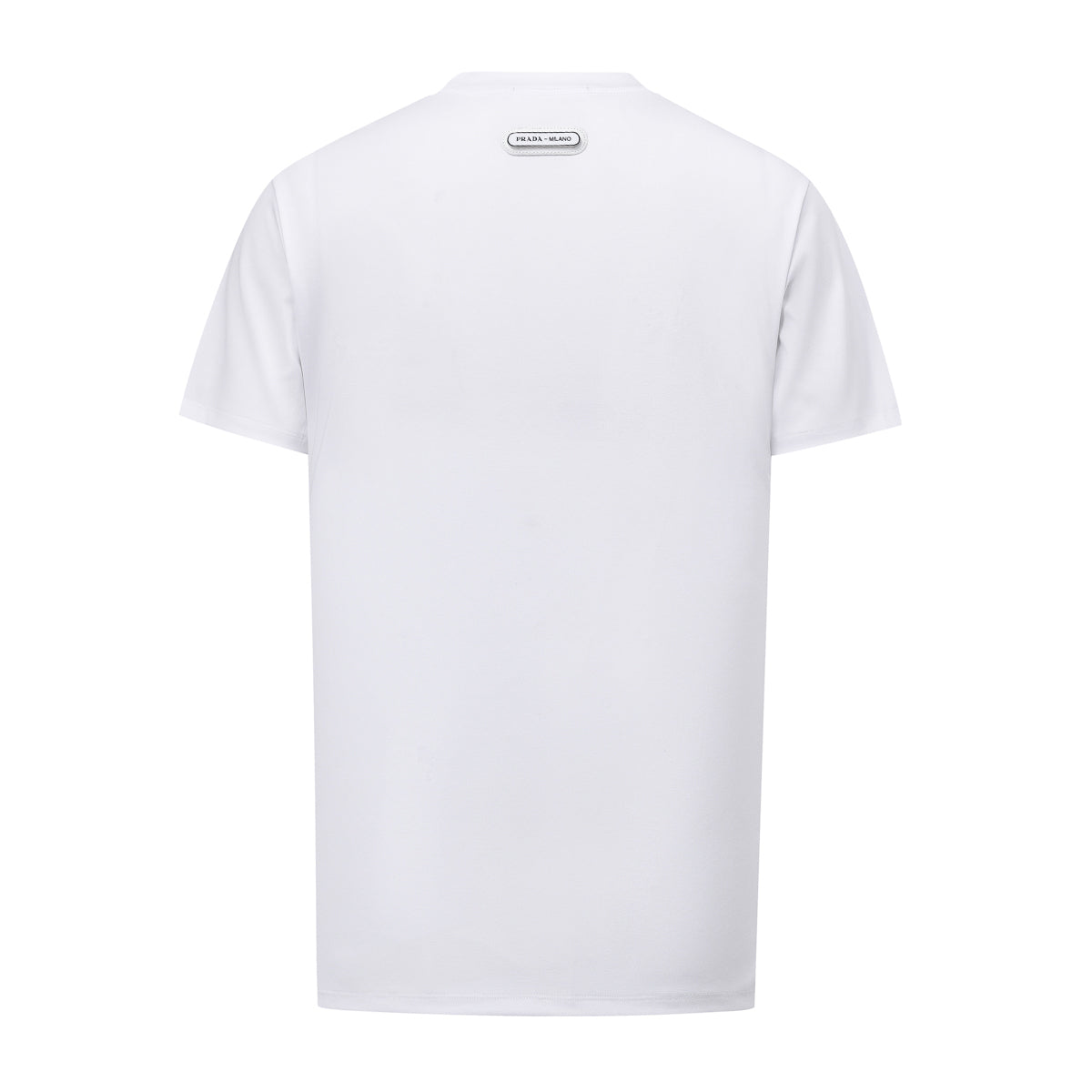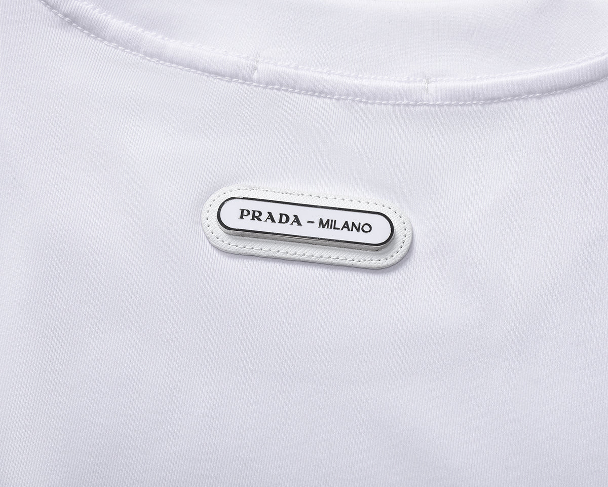 Elevate your essentials with this premium Prada Milano t-shirt, crafted in Italy from 100% high-quality cotton for exceptional comfort and breathability. The design features a minimalist silhouette enhanced by Prada’s iconic rubber triangle logo patch on the chest and branded neckline detailing for a refined finish.