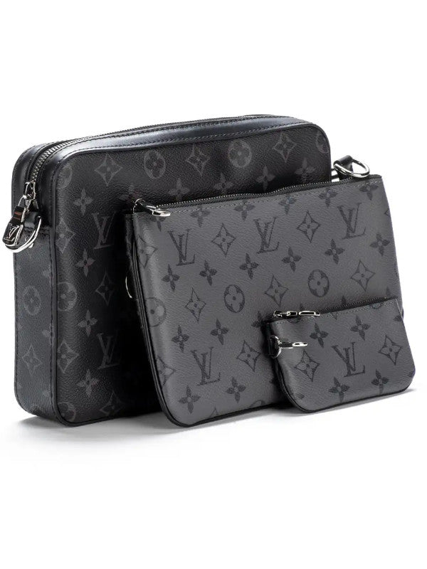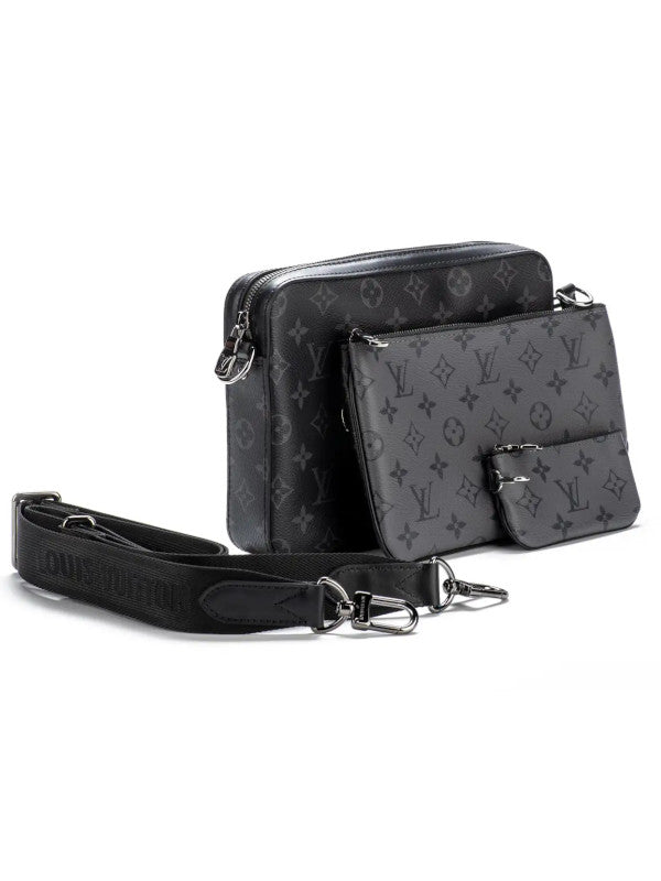 The Louis Vuitton Trio Messenger Bag in Monogram Eclipse is the epitome of contemporary luxury and practical design. Crafted from premium Monogram Eclipse canvas, this sleek and versatile crossbody bag combines elegance with functionality. The trio structure includes two zipped compartments and a removable coin pouch, offering organized storage for your essentials.