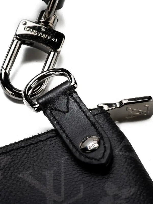 The black textile strap is adjustable and boldly branded with “Louis Vuitton,” ensuring comfort and style in equal measure. Whether worn across the chest or over the shoulder, this statement piece is a must-have for the modern man on the go.