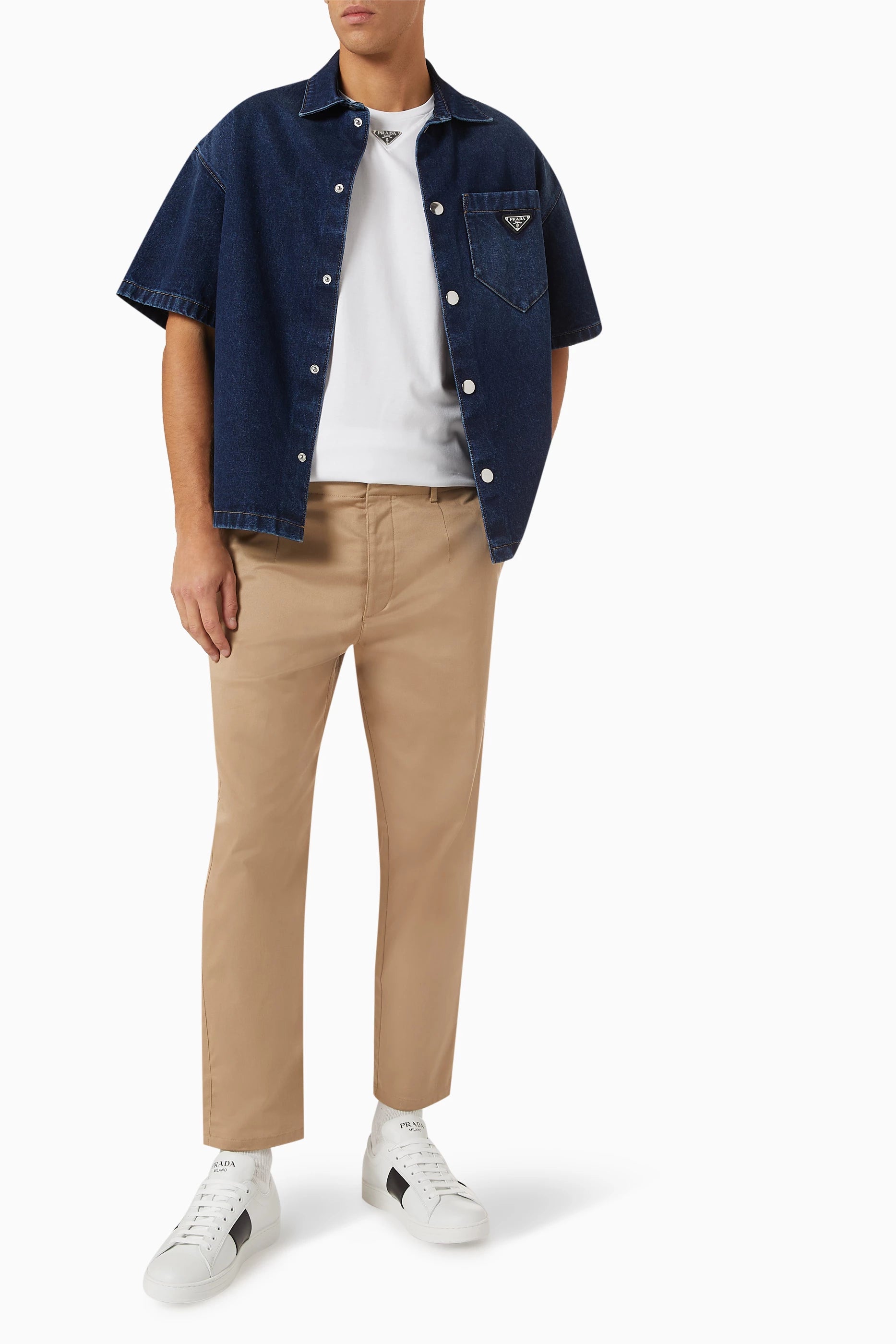 Design: Subtly detailed with the iconic Prada Milano logo plaque at the collar—minimalist, yet unmistakably refined.