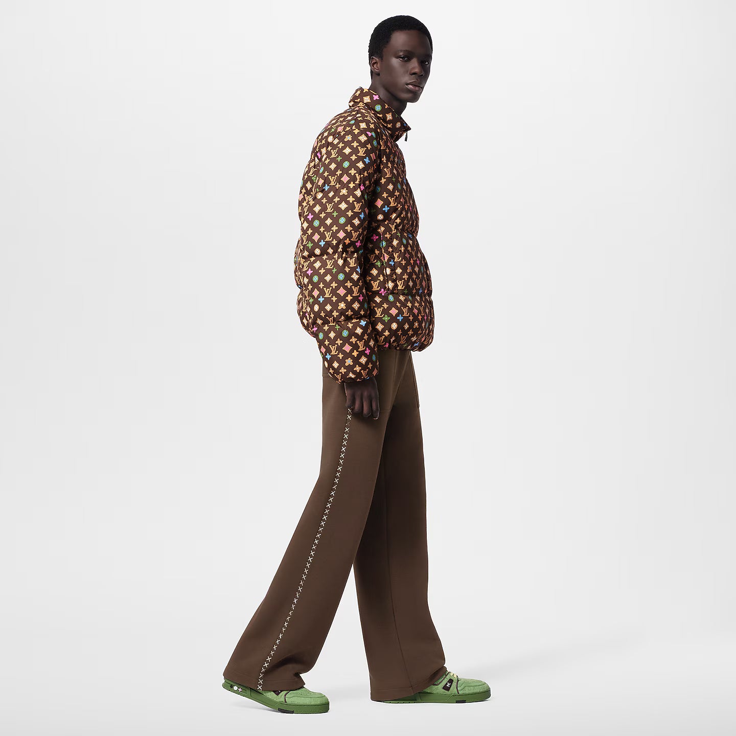 Crafted in Italy from premium calf leather, the sneaker features an all-over LV monogram debossed pattern, complemented by contrast pastel pink accents and a signature LV logo plaque. The design is elevated by detailed perforations on the toe box, monogram flower motifs on the outsole, and hand-stitched components—a true reflection of Louis Vuitton’s commitment to artisanal craftsmanship.