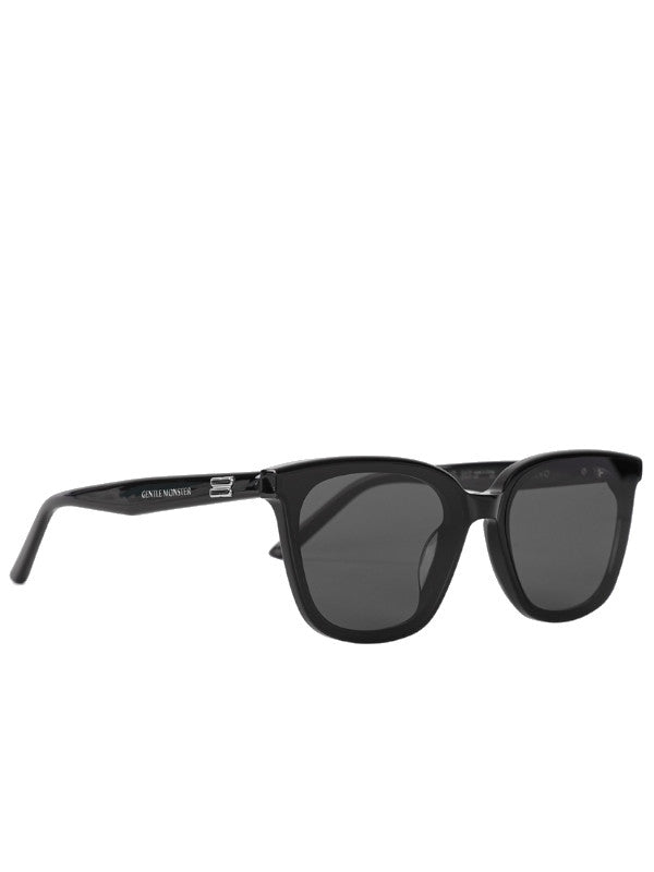 Introducing the effortlessly chic Gentle Monster Pino 01 sunglasses, a must-have addition to your accessory collection. Crafted with precision from black acetate, these sunglasses feature a sleek square frame design that exudes contemporary sophistication. The tinted lenses not only offer a touch of mystery but also provide essential UV protection for your eyes. Adorned with a discreet logo print at the arm and metal detailing on the side, these sunglasses perfectly blend style and functionality. Designed with curved tips for a comfortable fit, they are as practical as they are stylish. Complete with a protective case, the Gentle Monster Pino 01 sunglasses are the epitome of modern elegance.