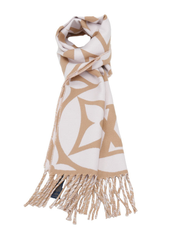 Elevate your winter wardrobe with this Luxury Monogram Scarf, blending warmth and style effortlessly. Crafted from soft, premium fabric, this scarf showcases an elegant beige and white monogram pattern, adding a touch of sophistication to any outfit. The fringed edges provide a chic, timeless detail, making it the perfect accessory for both casual and formal wear. Wrap yourself in comfort and luxury with this versatile piece that offers both style and coziness for the colder months.