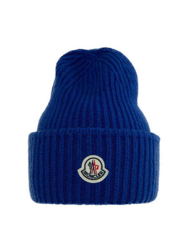 MONCLER Wool & Cashmere Beanie featuring brioche stitch, Gauge 3 and logo patch. 70% virgin wool, 30% cashmere.