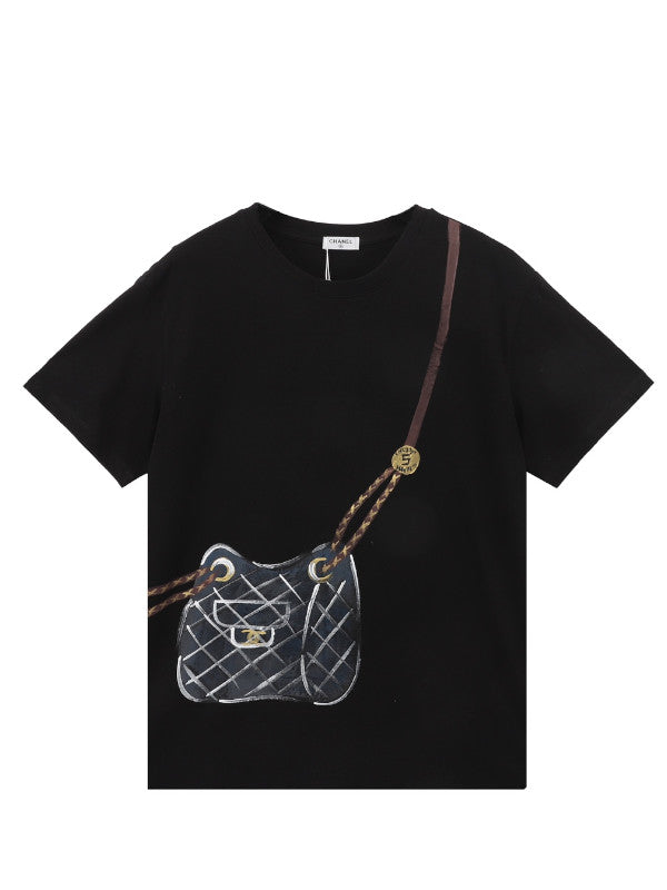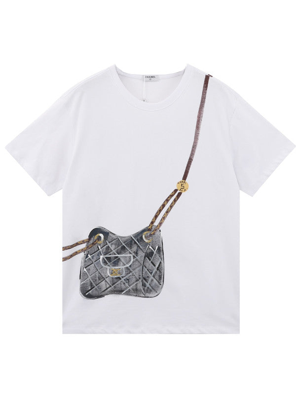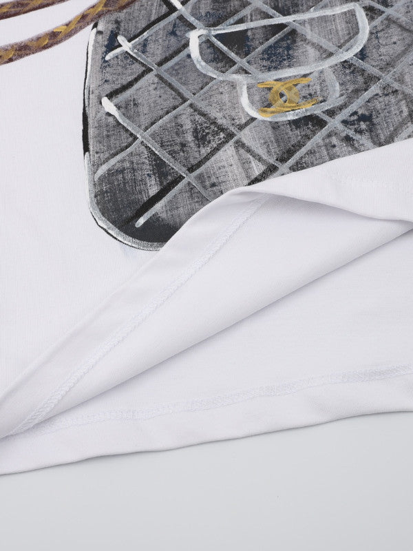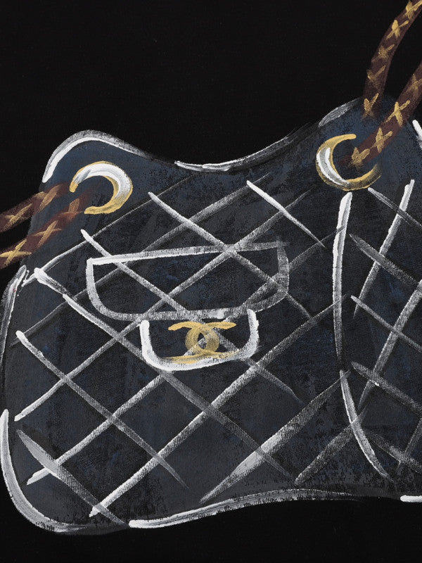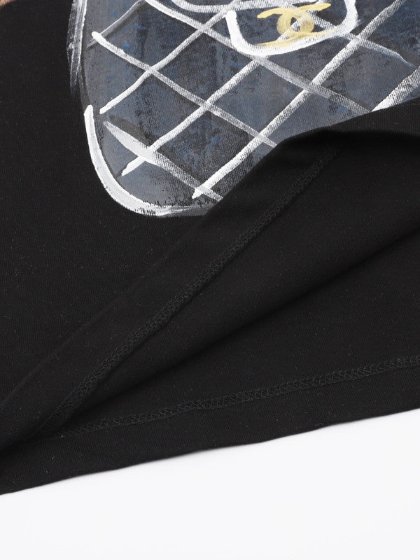 The highlight of this T-shirt is the label tag-inspired logo print adorning the front, adding a touch of sophistication and branding to the classic design. The subtle yet distinctive logo patch at the neckline further enhances the piece, reflecting CHANEL's iconic aesthetic.