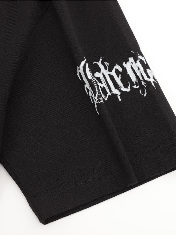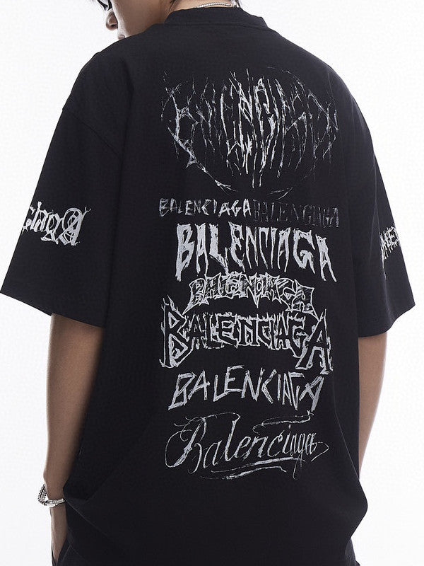 Designed with a classic crewneck and short sleeves, this t-shirt offers ultimate comfort and versatility for everyday wear. The standout feature is the DIY metal artwork printed at the front, back, and sleeves, adding a touch of edgy flair to the vintage-inspired design.