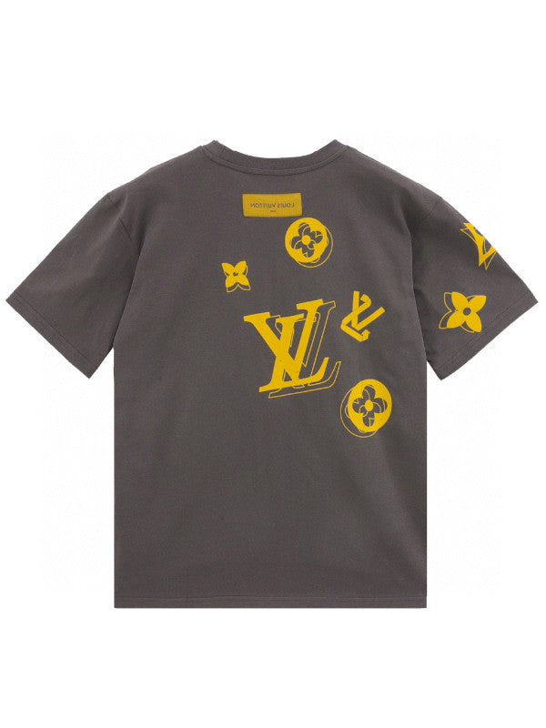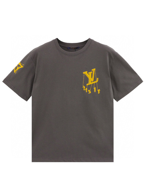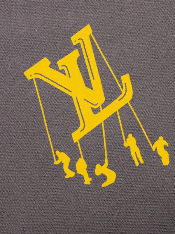 This standout t-shirt features a distinctive print of people hanging from the iconic Louis Vuitton logo, adding a special touch to your wardrobe. The t-shirt boasts a unique print that sets it apart from other models.