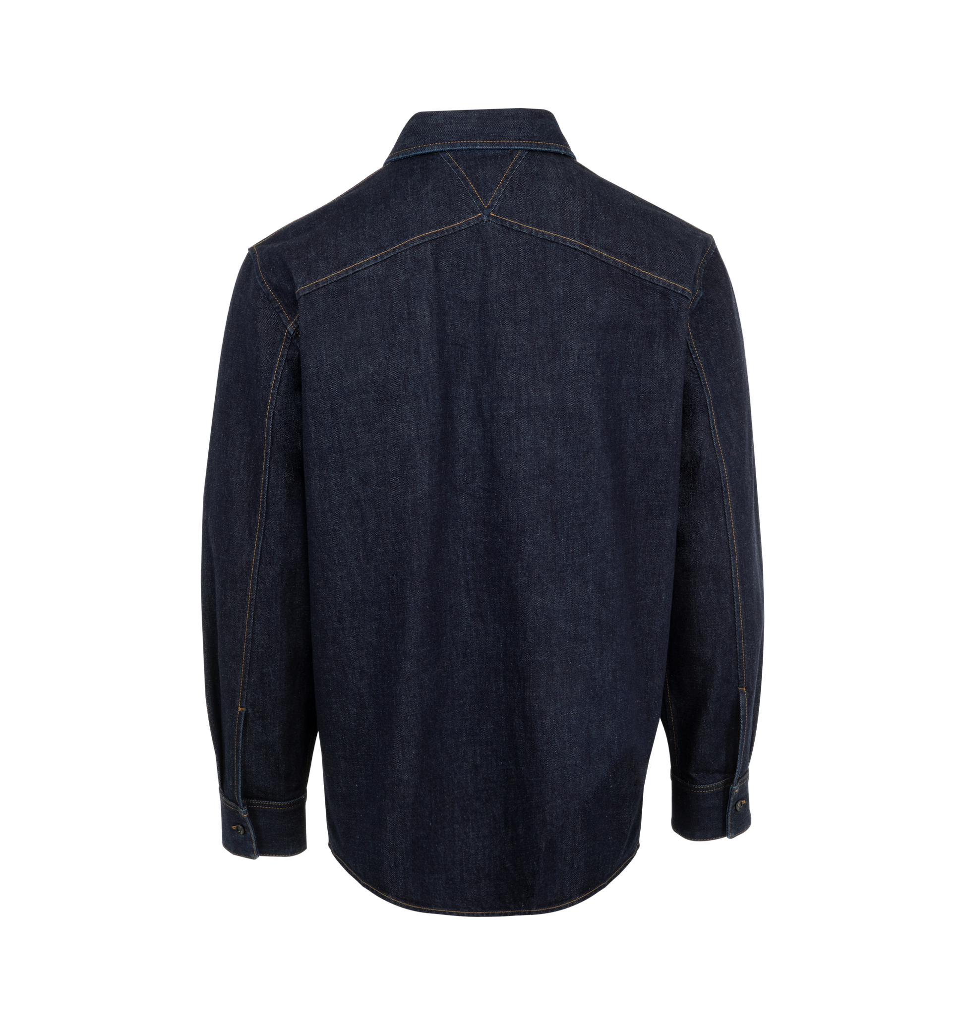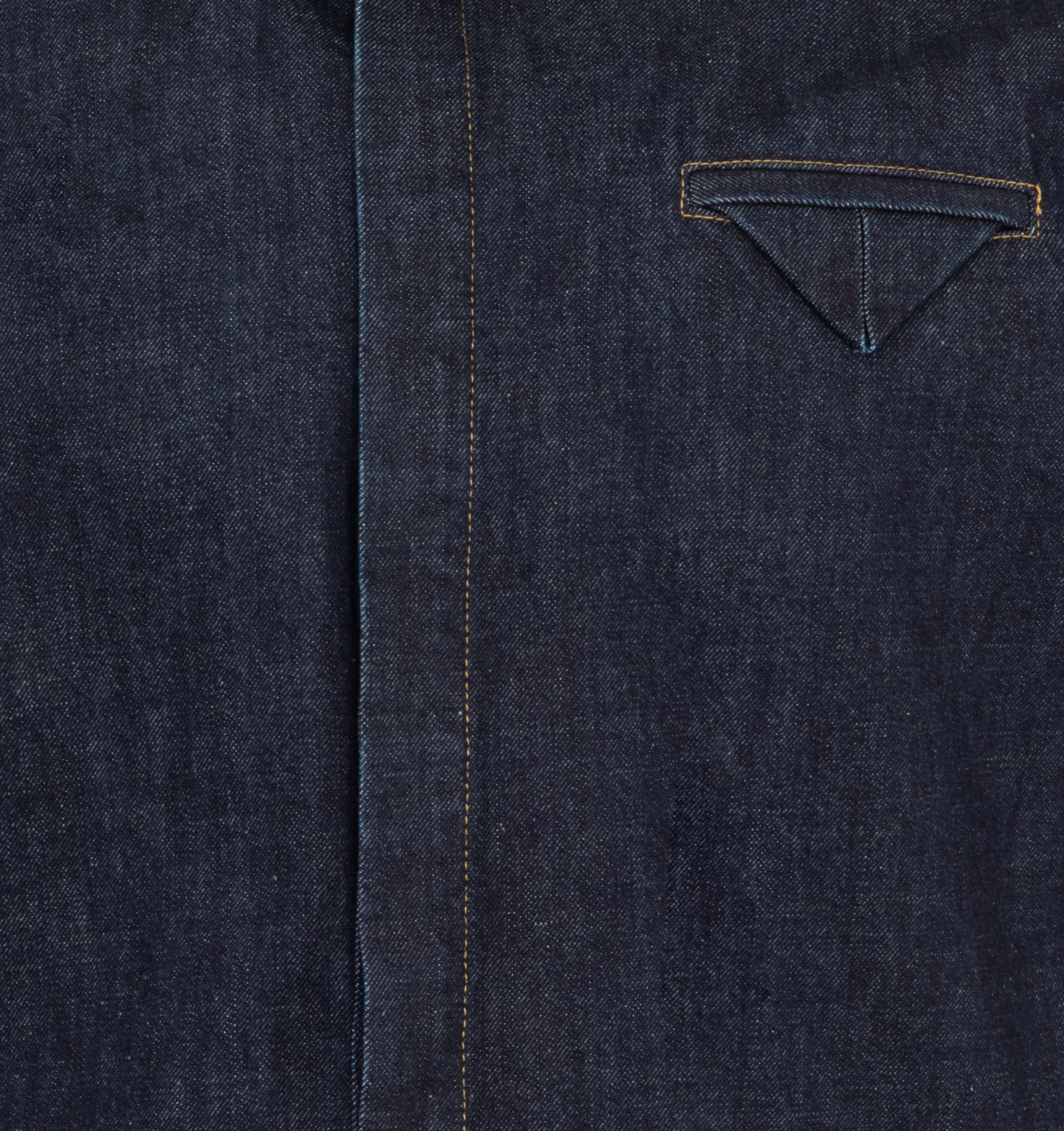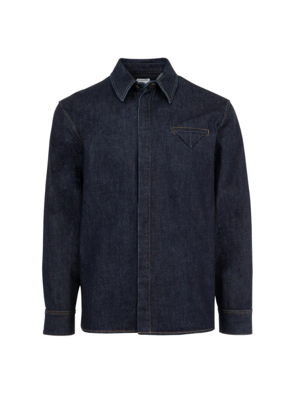 Bottega Veneta Indigo wash denim shirt in a regular fit with button closure and triangle pocket detail. 100% cotton. Made in Italy.