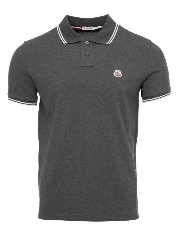 MONCLER Logo Polo Shirt featuring collar, button placket closure, short sleeves and felt logo patch. 100% cotton. Made in Turkey.