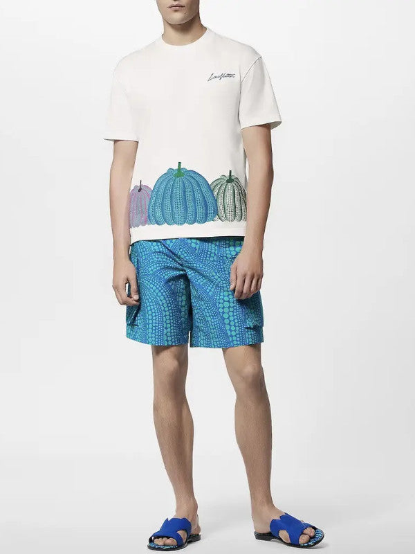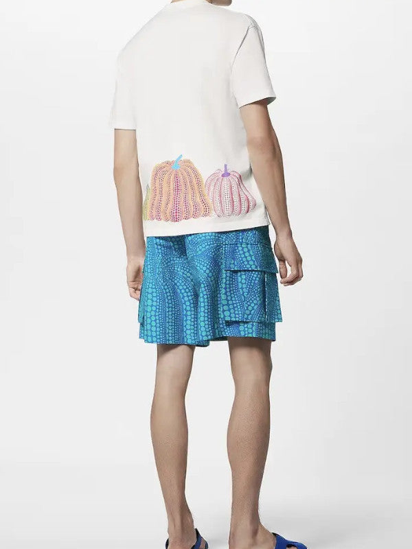 Step into the world of contemporary art and fashion fusion with the Louis Vuitton x Yayoi Kusama Pumpkin Print T-Shirt. This limited-edition piece features the visionary Japanese artist’s iconic pumpkin motifs, boldly displayed in a gradient of purple, turquoise, and green across the hemline.