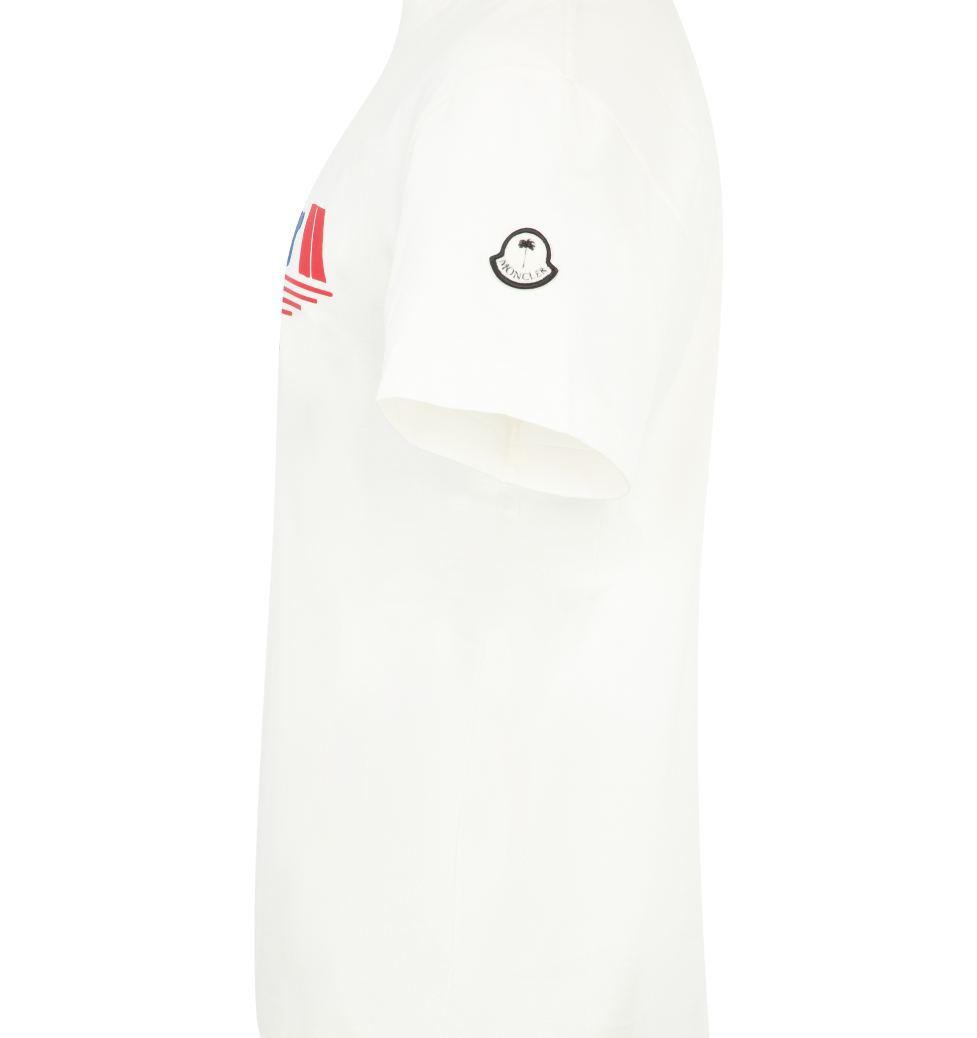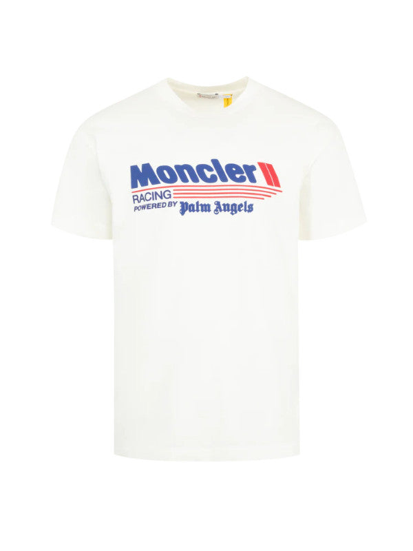 Moncler X Palm Angels Retro T-Shirt has a crew neck, short sleeves, a printed graphic design, and a signature logo on the sleeve.