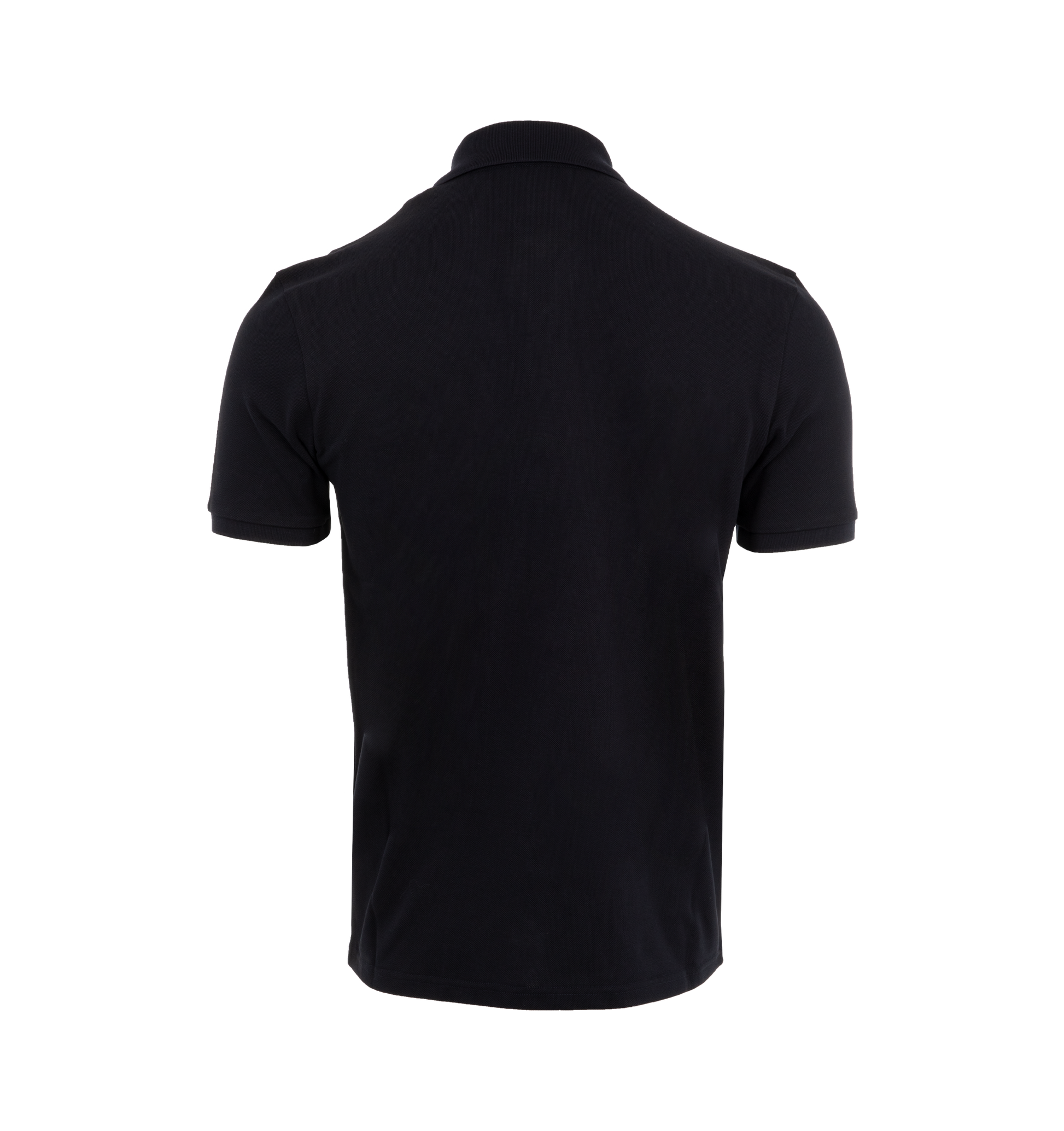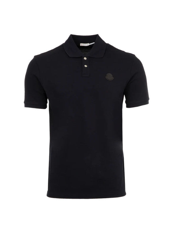 MONCLER short sleeve polo shirt with button placket and spread collar. Features a contrasting logo patch at the chest and the brand's signature tri-colour motif at the back. 100% Cotton.