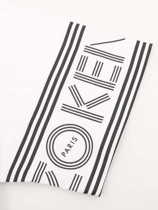Designed with a ribbed crew neck and short sleeves, this t-shirt ensures a comfortable fit and effortless style. The standout feature is the Kenzo Paris sleeve band logo, adding a touch of urban sophistication to the classic white design.