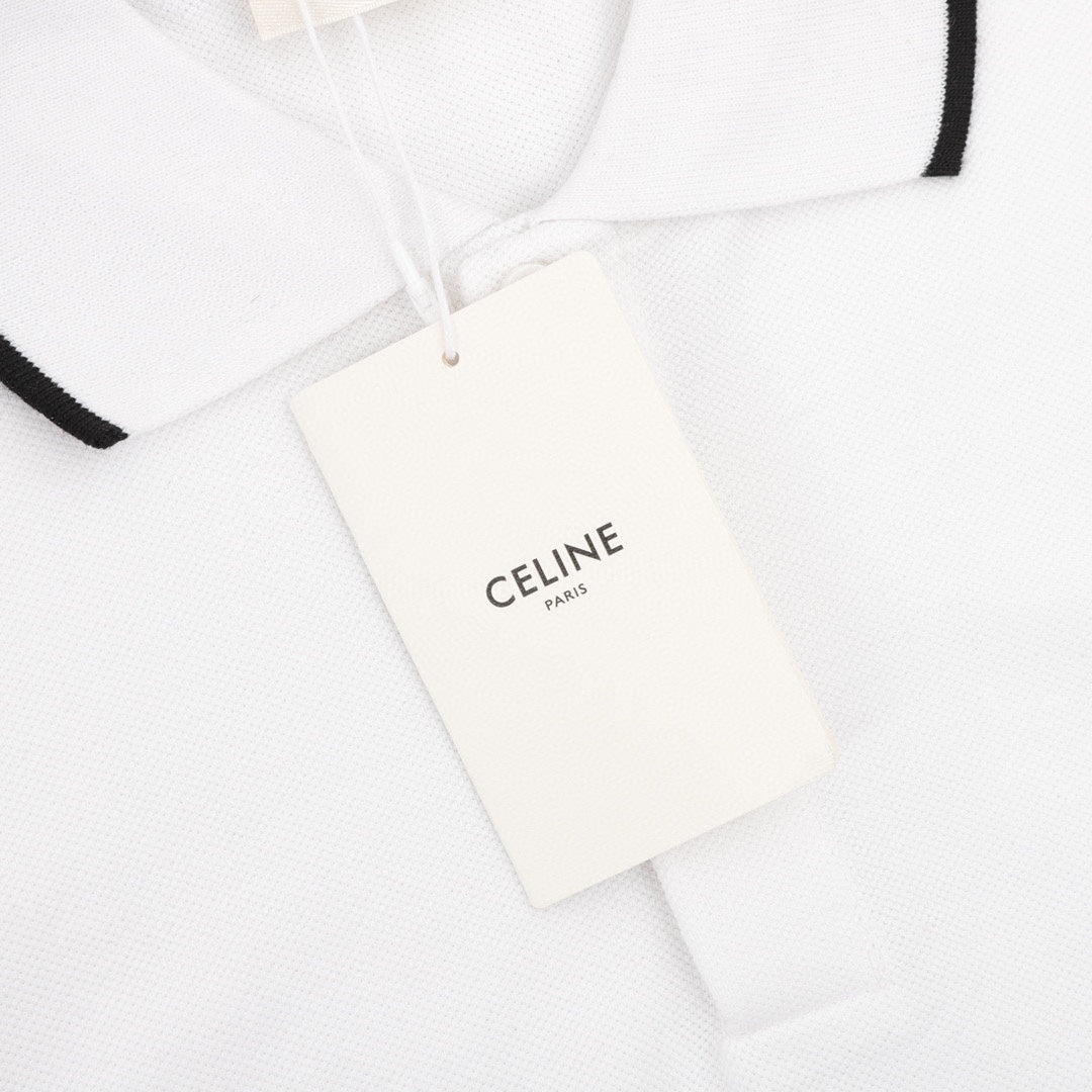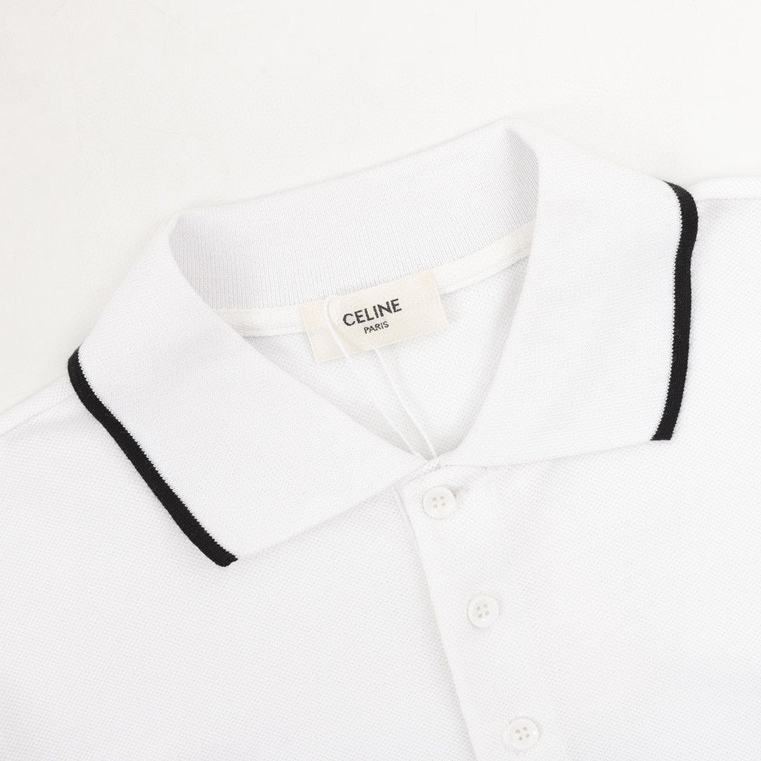 Sleek, minimal, and unmistakably sophisticated, the Celine Triomphe Polo Shirt is a masterclass in understated luxury. Made from premium white cotton piqué, this polo is subtly accented with contrasting black piping on the collar and sleeves for a crisp, tailored edge.