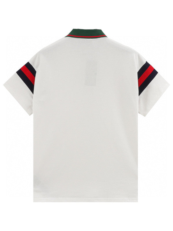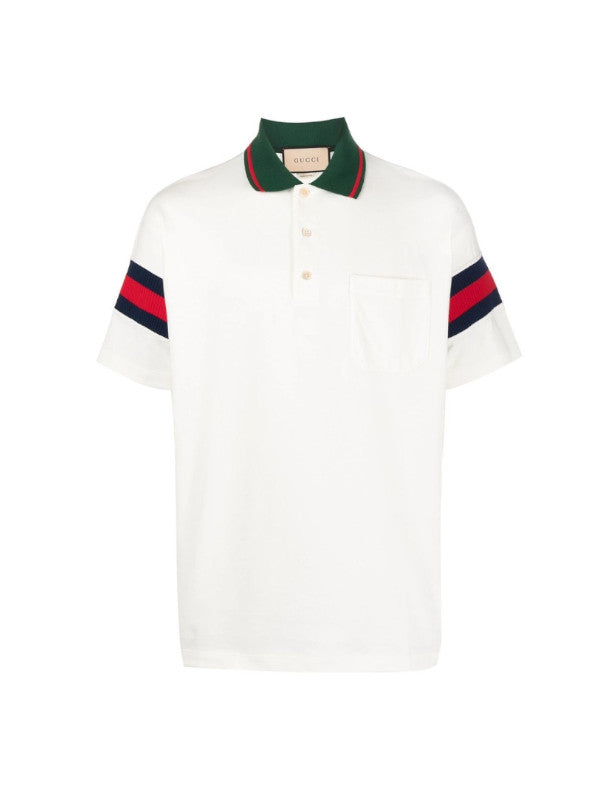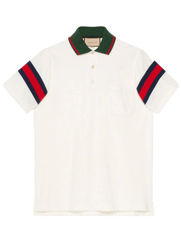 Introducing the Web-Stripe Jersey Polo Shirt from Gucci – A Timeless Blend of Elegance and Comfort.