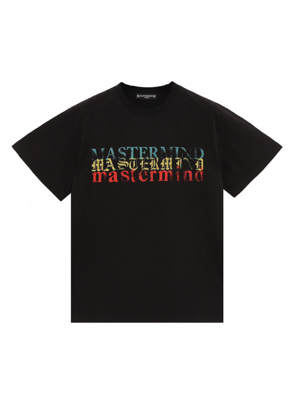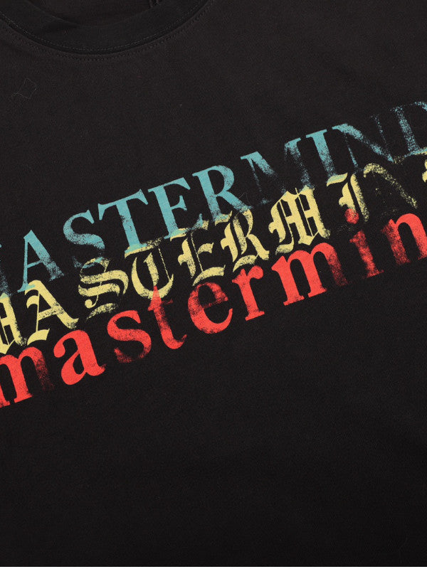 Showcases the "Mastermind" logo in a vibrant multicolor print, adding a pop of color.