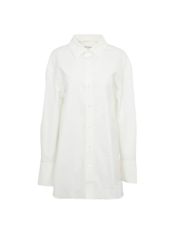 Saint Laurent Oversized shirt crafted from organic cotton featuring pointed collare, drop shoulders, front-button closure, curved hem and concealed four-button cuffs. 100% cotton. Made in Italy.