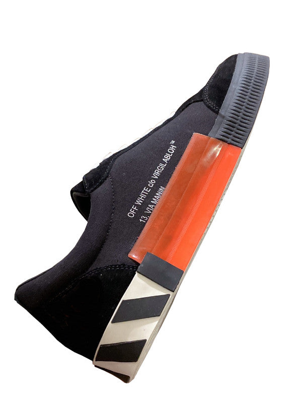 Features the signature Off-White arrow logo in black on the side, offering a striking contrast.