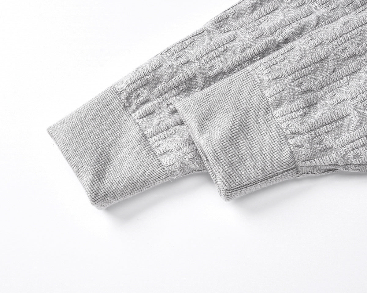Step into timeless sophistication with the Dior Monogram Puffer Hybrid Jacket. This premium piece combines the insulating comfort of a puffer with the refined craftsmanship of a classic knitwear silhouette. Featuring an all-over tonal Dior Oblique monogram pattern, the jacket is constructed from high-quality jacquard fabric with a quilted, down-filled front panel that offers warmth without bulk.