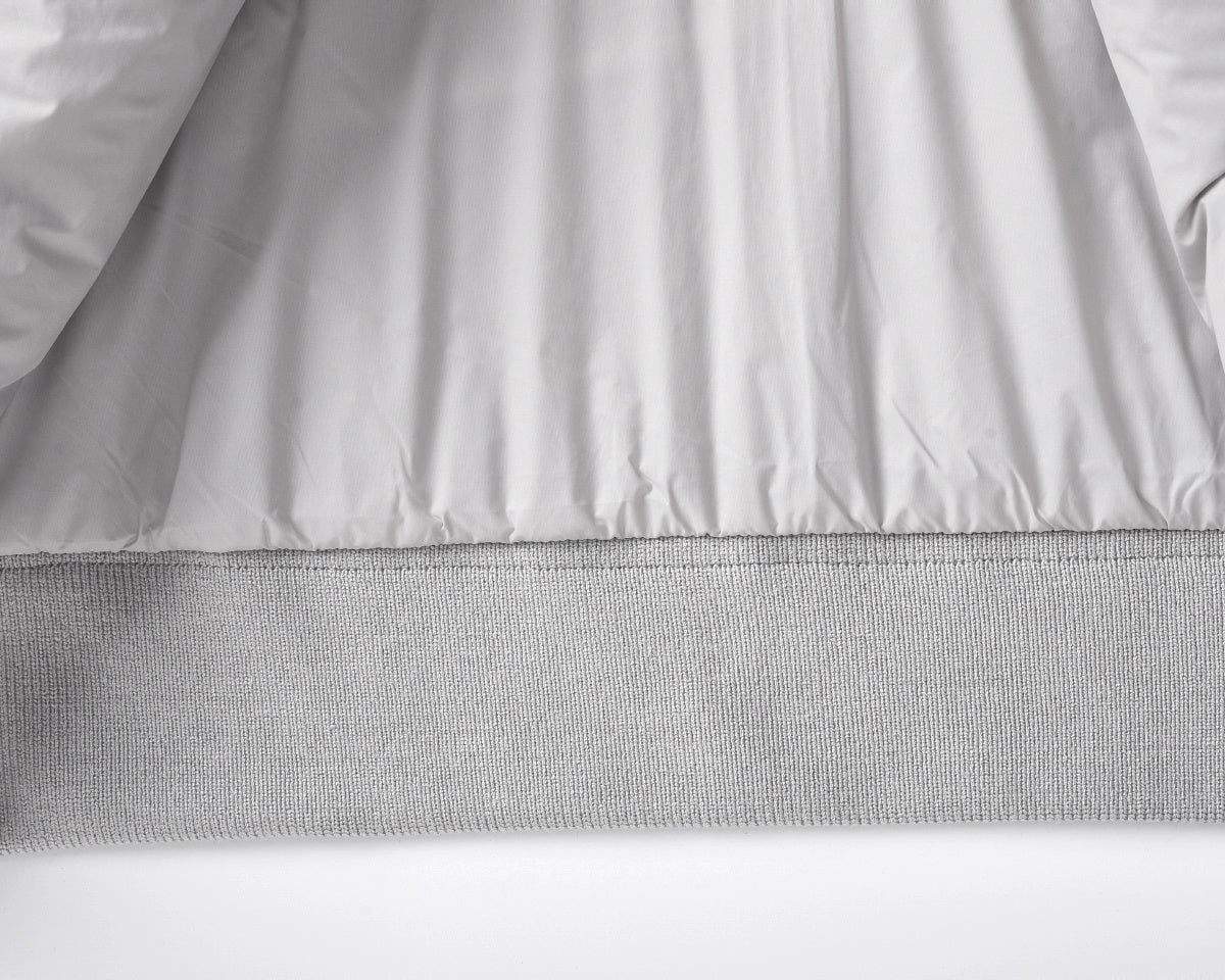Ribbed stand collar, cuffs, and hem for a secure fit